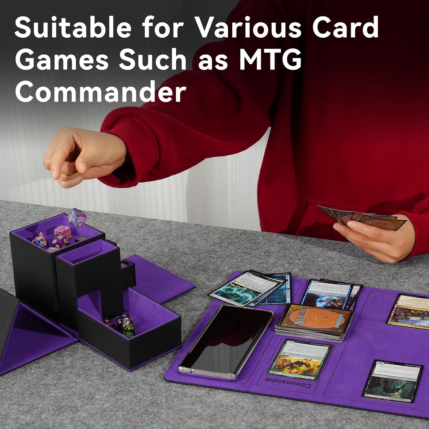 Leather Dice Tray & Tower Storage Box, 3 in 1 Dice Holder Case (Rolling Tray, Tower, Storage Drawers), Magnetic Closure DND Accessories Gifts for RPG MTG, Black/Violet