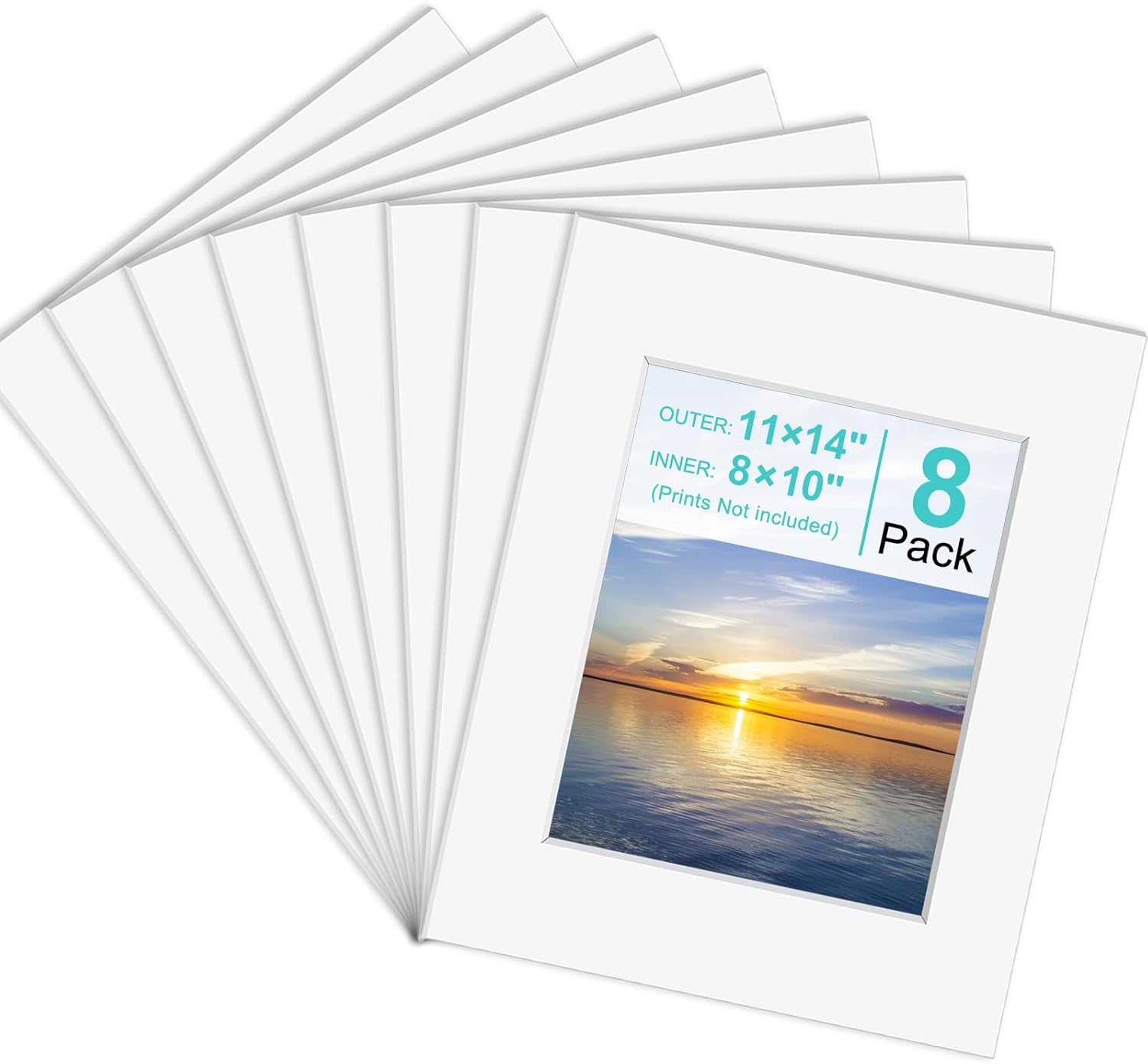 Phinus 8 Pack Picture Mats for Frames, Acid Free 11x14 Matted to 8x10, Picture Frame Mats for Pictures, Watercolor, Artwork and Prints (White)