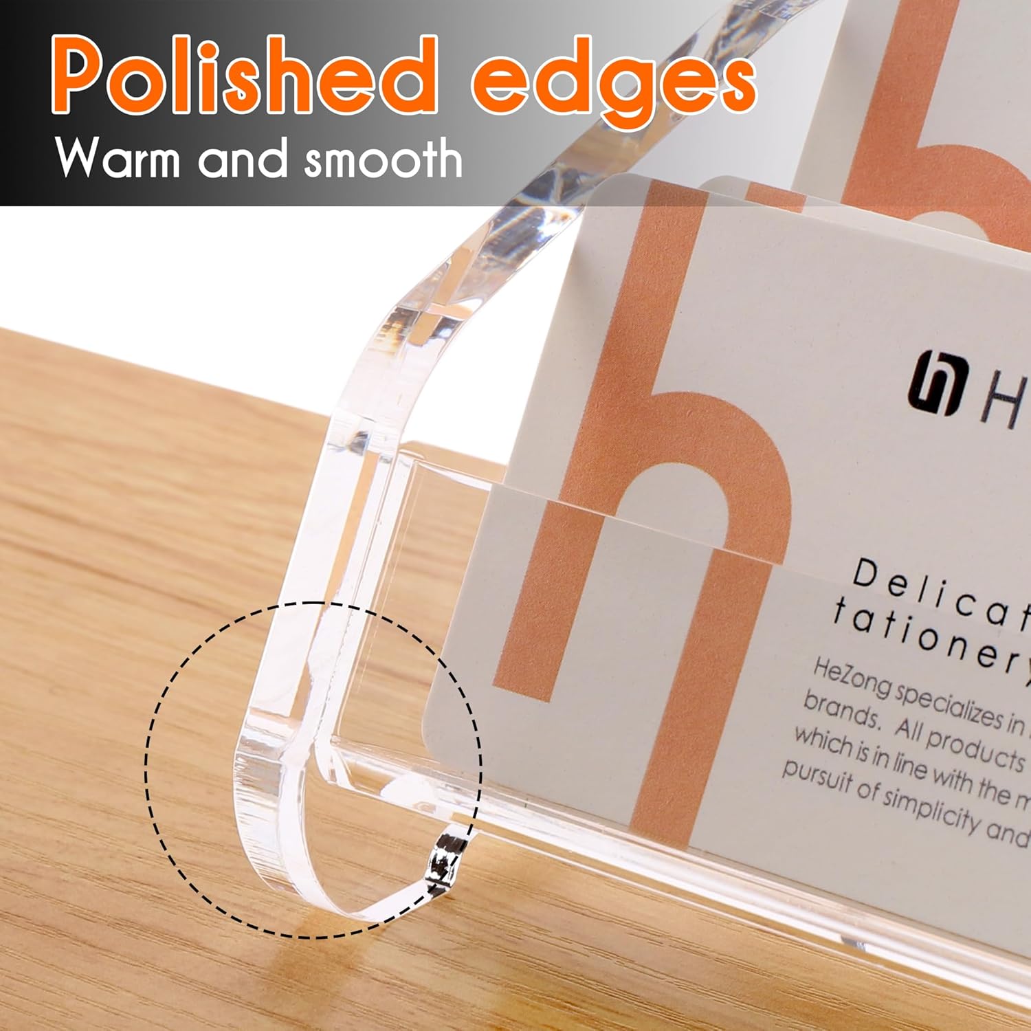 - FASHIONABLE&PRACTICAL BUSINESS CARD HOLDER:Acrylic business card holders are more aesthetically pleasing with their streamlined design, hand-polished, crystal clear and other craftsmanship.Thoughtful angled back slot design prevents business cards from tilting forward and always keeps them facing the customers.Reveal your noble taste at all times