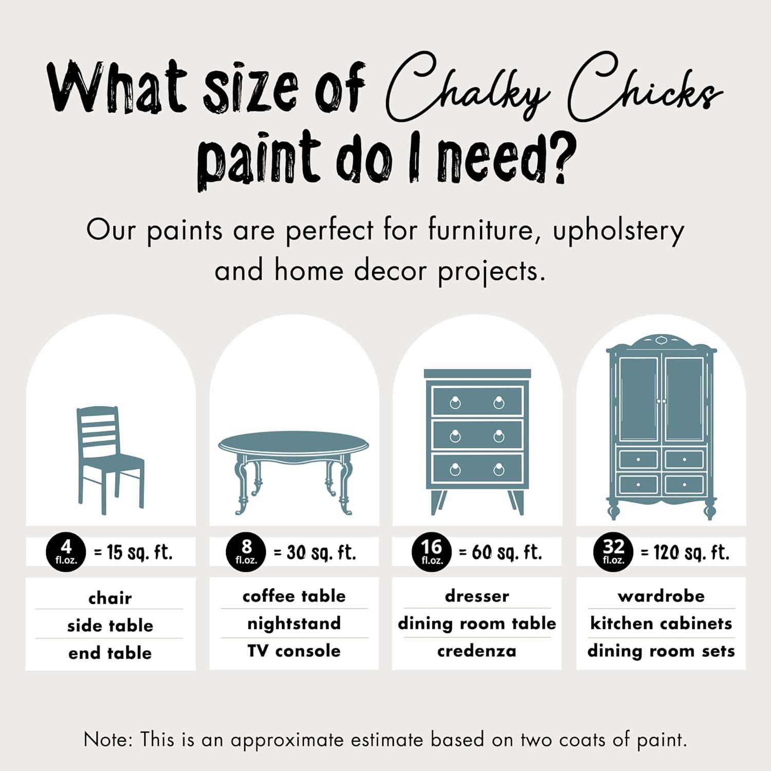 - TRANSFORM FURNITURE AND HOME DECOR WITH EASE: Chalky Chicks will save you time, money, and hassle. No sanding, priming, or multiple coats needed—just start painting your furniture with our cabinet paint no sanding or priming. Our paint is suitable for wood, metal, concrete, textiles, laminate, and more. Whether you prefer navy blue chalk paint, light blue paint, or green chalk paint, our chalk paint for furniture transforms any space with ease, making it ideal for DIY projects & craft painting.