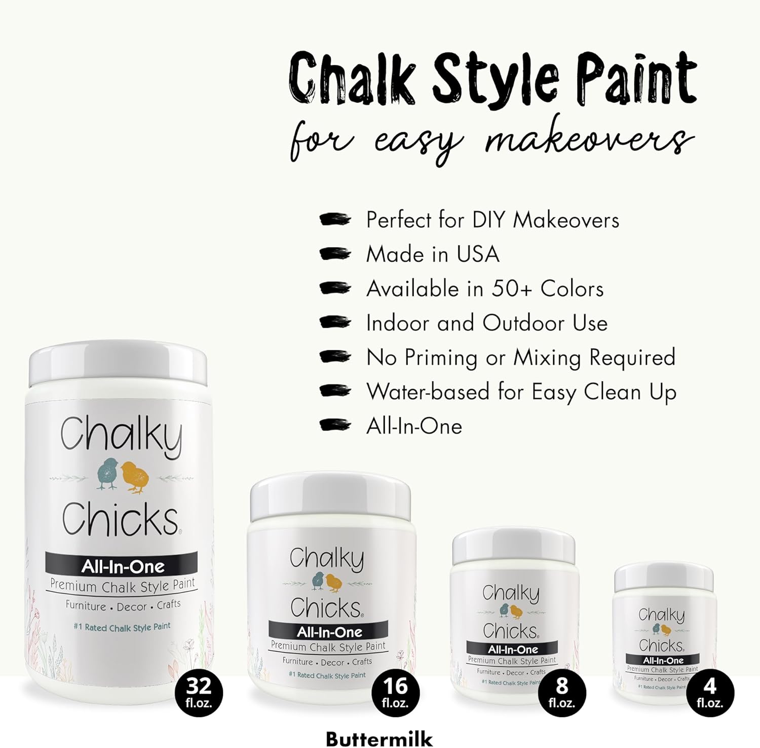 Chalky Chicks All-in-One Chalk Paint for Furniture or Cabinet - 8 Fl Oz - Matte Finish Buttermilk (White) for Metal, Wood Furniture Paint - No Sanding All-in-One for Home Decor & Crafts, USA Made