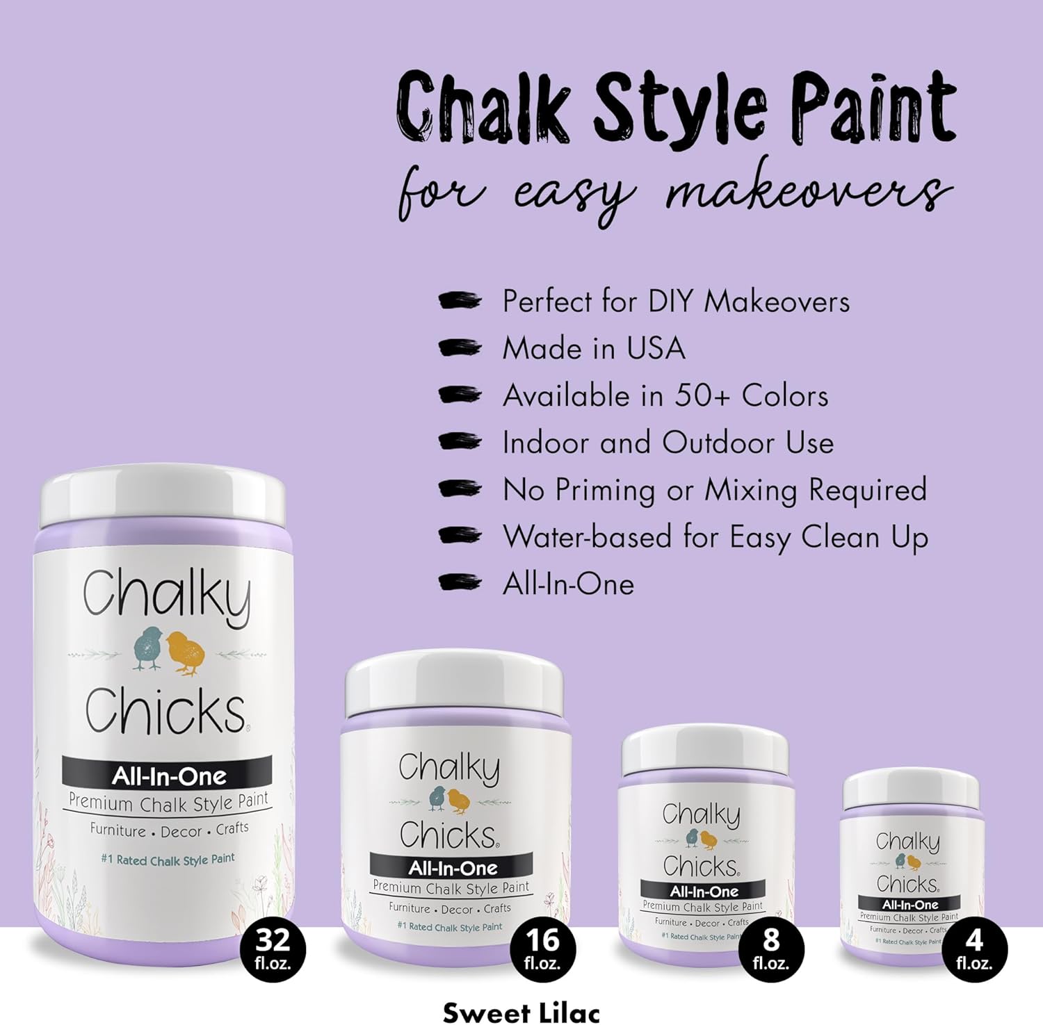 Chalky Chicks All-in-One Chalk Paint for Furniture or Cabinet - 8Fl Oz-Matte Finish Sweet Lilac (Light Purple) for Metal, Wood Furniture Paint - No Sanding All-in-One for Home Decor & Crafts, USA Made