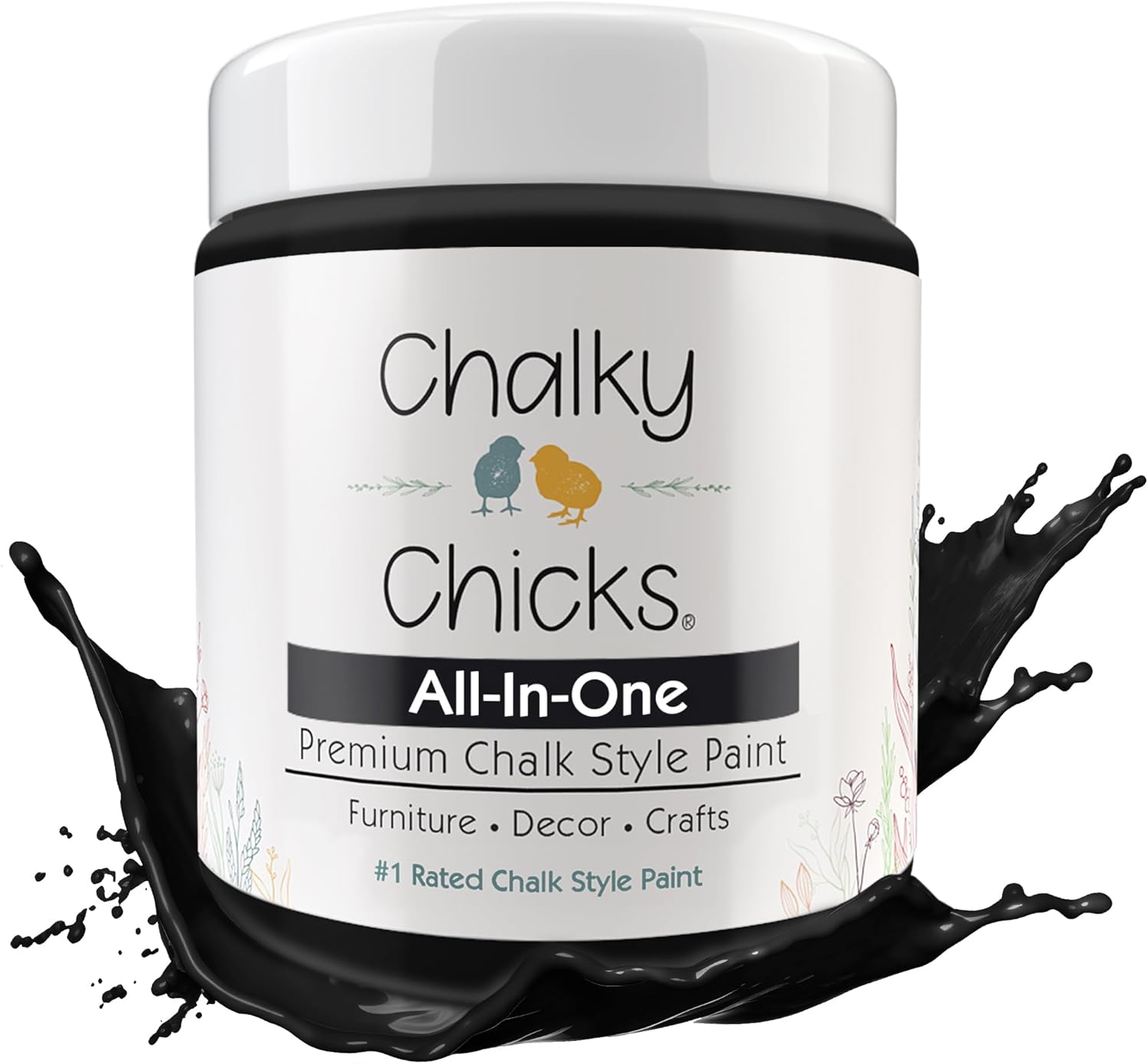 Chalky Chicks All-in-One Chalk Paint for Furniture or Cabinet - 8 Fl Oz - Matte Finish Starless Night Black for Metal, Wood Furniture Paint - No Sanding All-in-One for Home Decor & Crafts, USA Made