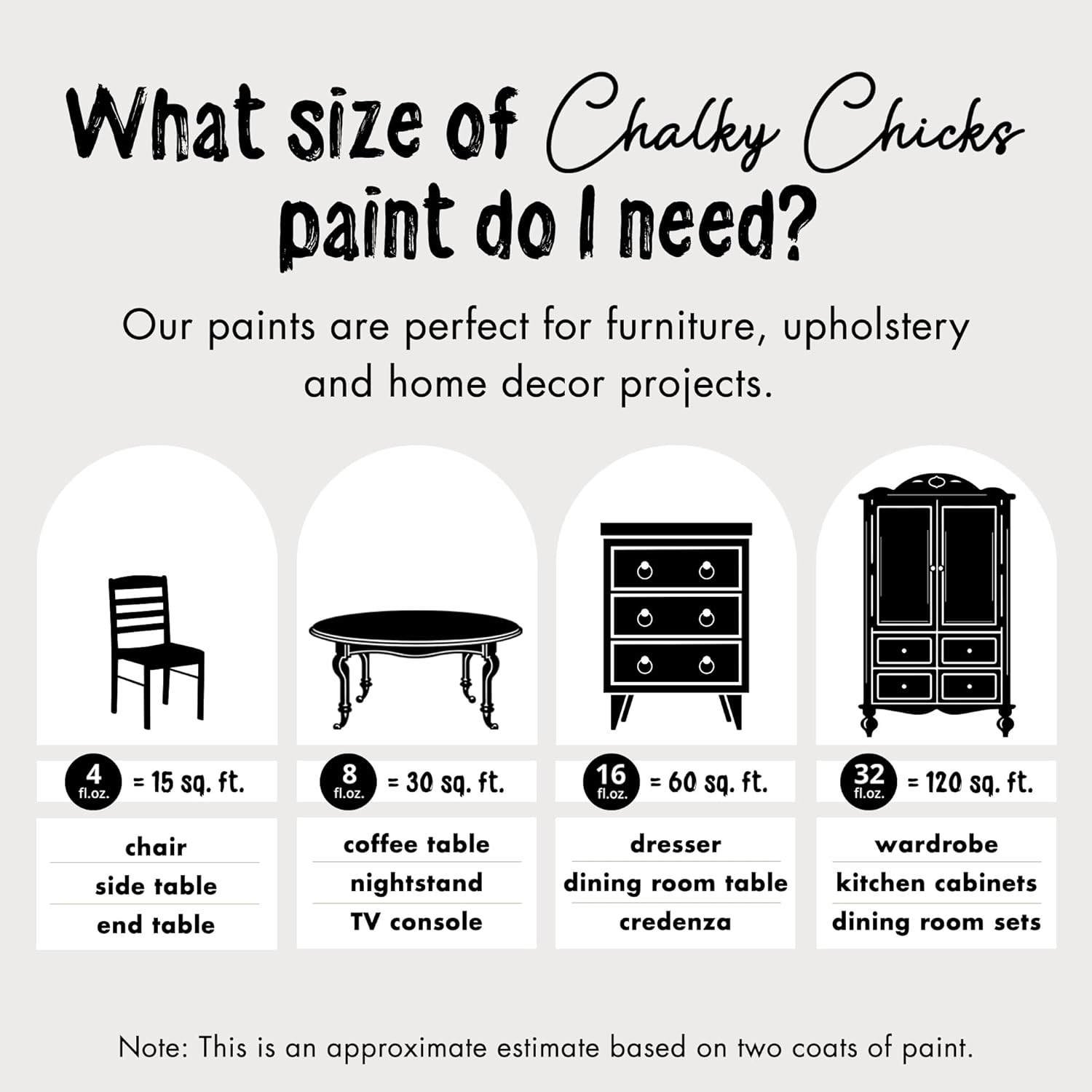 - TRANSFORM FURNITURE AND HOME DECOR WITH EASE: Chalky Chicks will save you time, money, and hassle. No sanding, priming, or multiple coats needed—just start painting your furniture with our cabinet paint no sanding or priming. Our paint is suitable for wood, metal, concrete, textiles, laminate, and more. Whether you prefer navy blue chalk paint, light blue paint, or green chalk paint, our chalk paint for furniture transforms any space with ease, making it ideal for DIY projects & craft painting.
