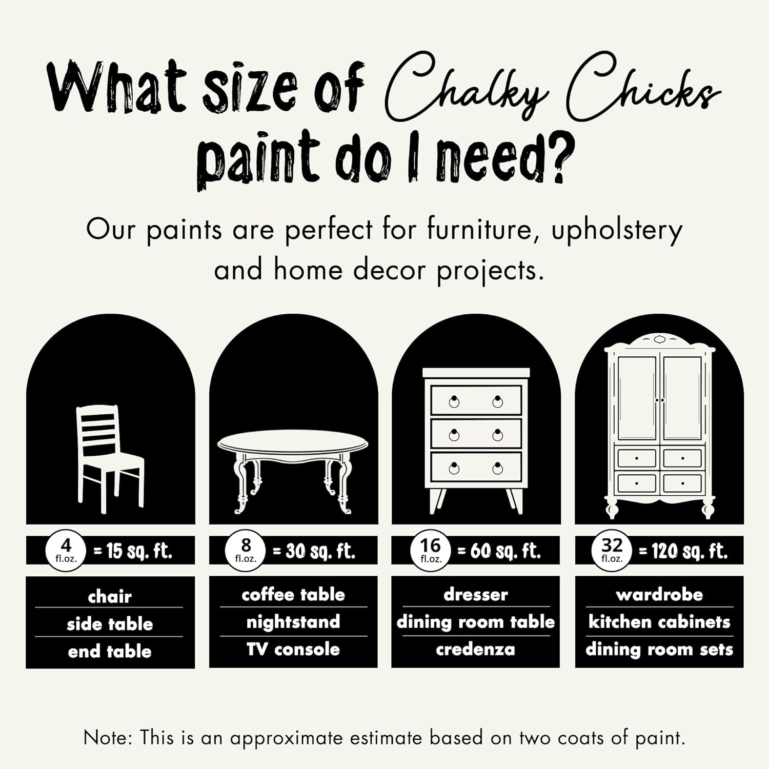 - TRANSFORM FURNITURE AND HOME DECOR WITH EASE: Chalky Chicks will save you time, money, and hassle. No sanding, priming, or multiple coats neededโjust start painting your furniture with our cabinet paint no sanding or priming. Our paint is suitable for wood, metal, concrete, textiles, laminate, and more. Whether you prefer navy blue chalk paint, light blue paint, or green chalk paint, our chalk paint for furniture transforms any space with ease, making it ideal for DIY projects & craft painting.