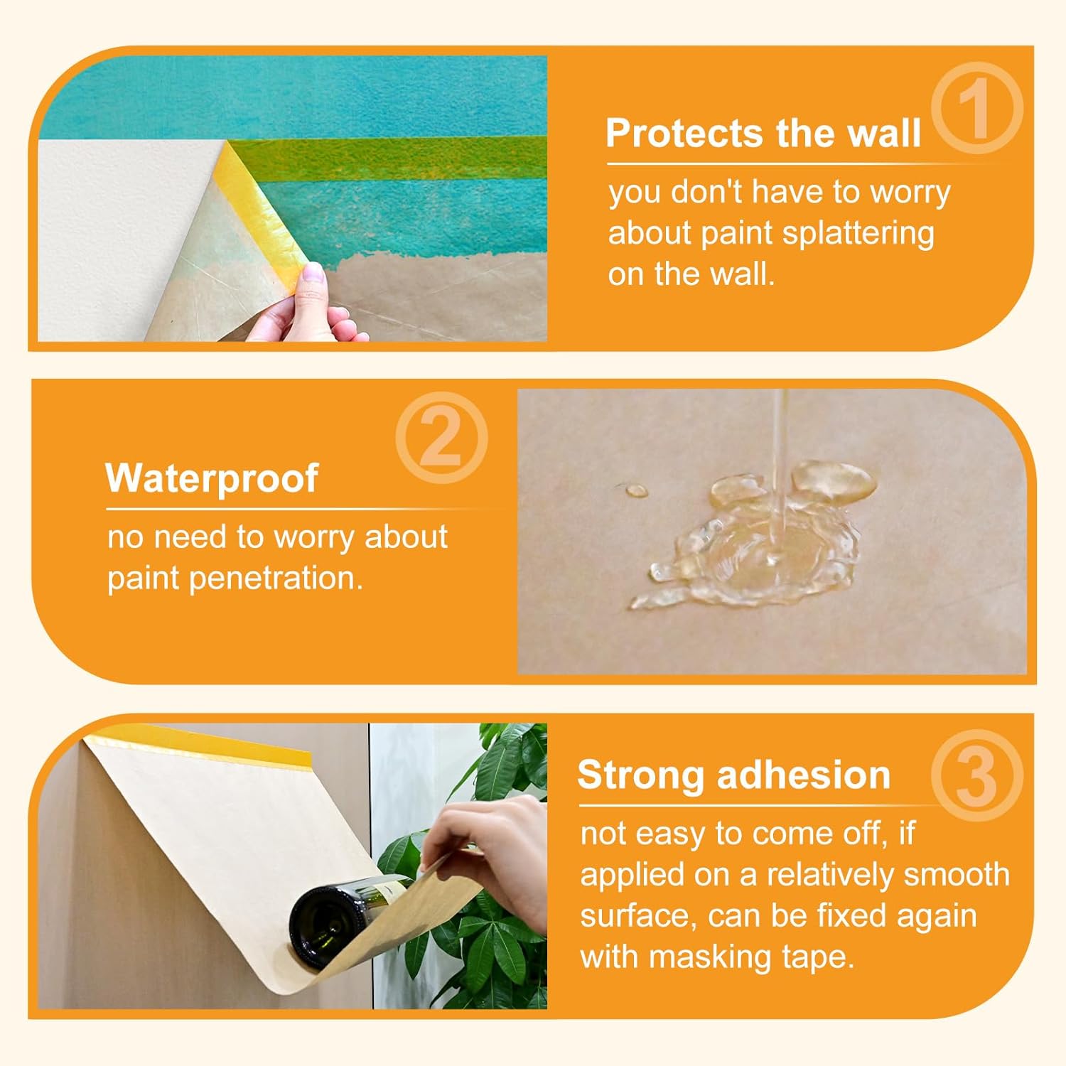 - 【Wide Range of Applications】: Paint masking paper can mask dust and paint, and can be widely used in automotive paint masking, interior and exterior decorative spray paint masking, dust masking on painting surfaces, floor paint masking, such as covering skirting, car doors and bodies, doors, furniture, wood, metal glass, etc