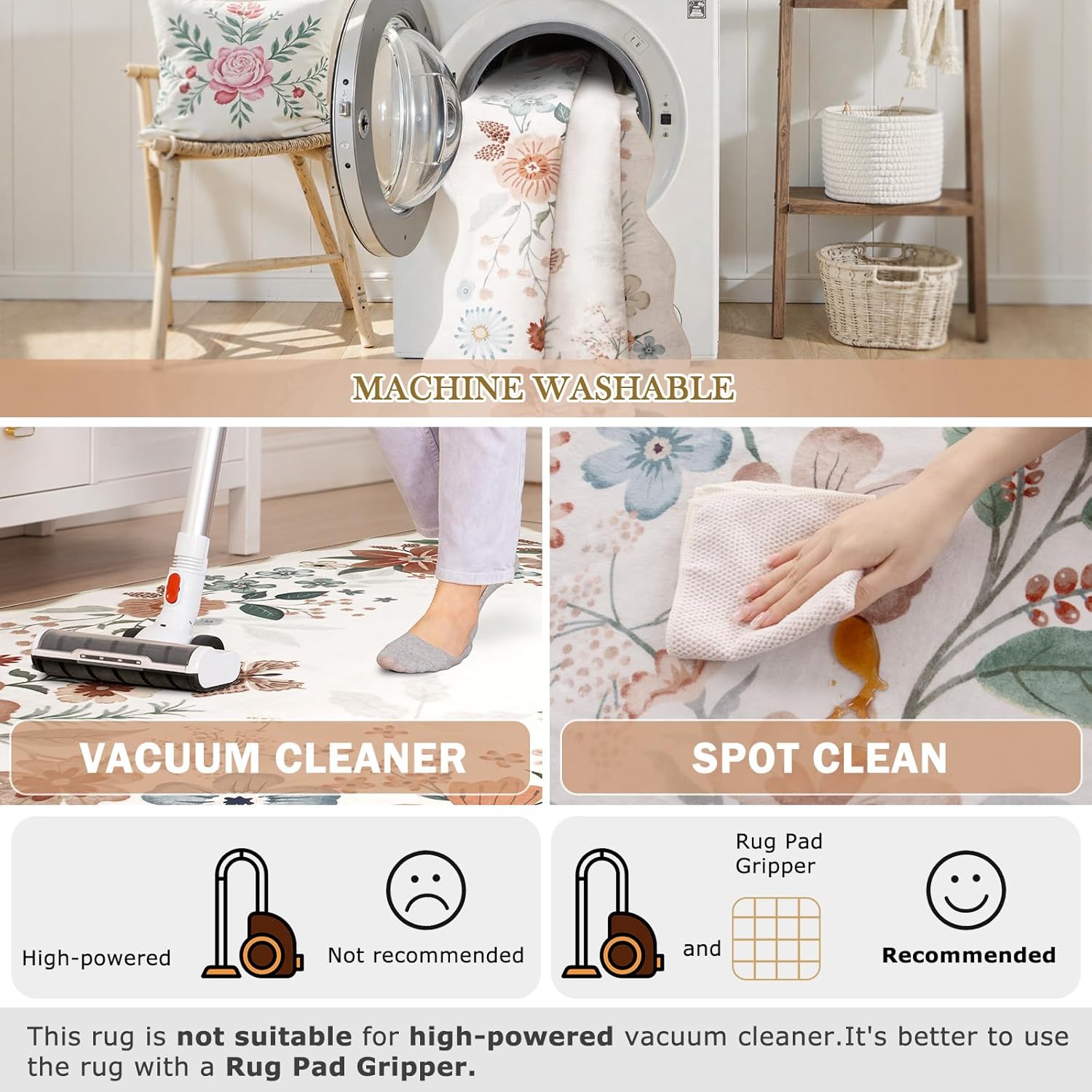 - Washable Rugs: Beverage stains can be easily solved with just a rag; dust/pet hair can be used to sweep robot/vacuum cleaner; deep cleaning just throw it into the washing machine. (It is recommended to use a low-power vacuum cleaner)