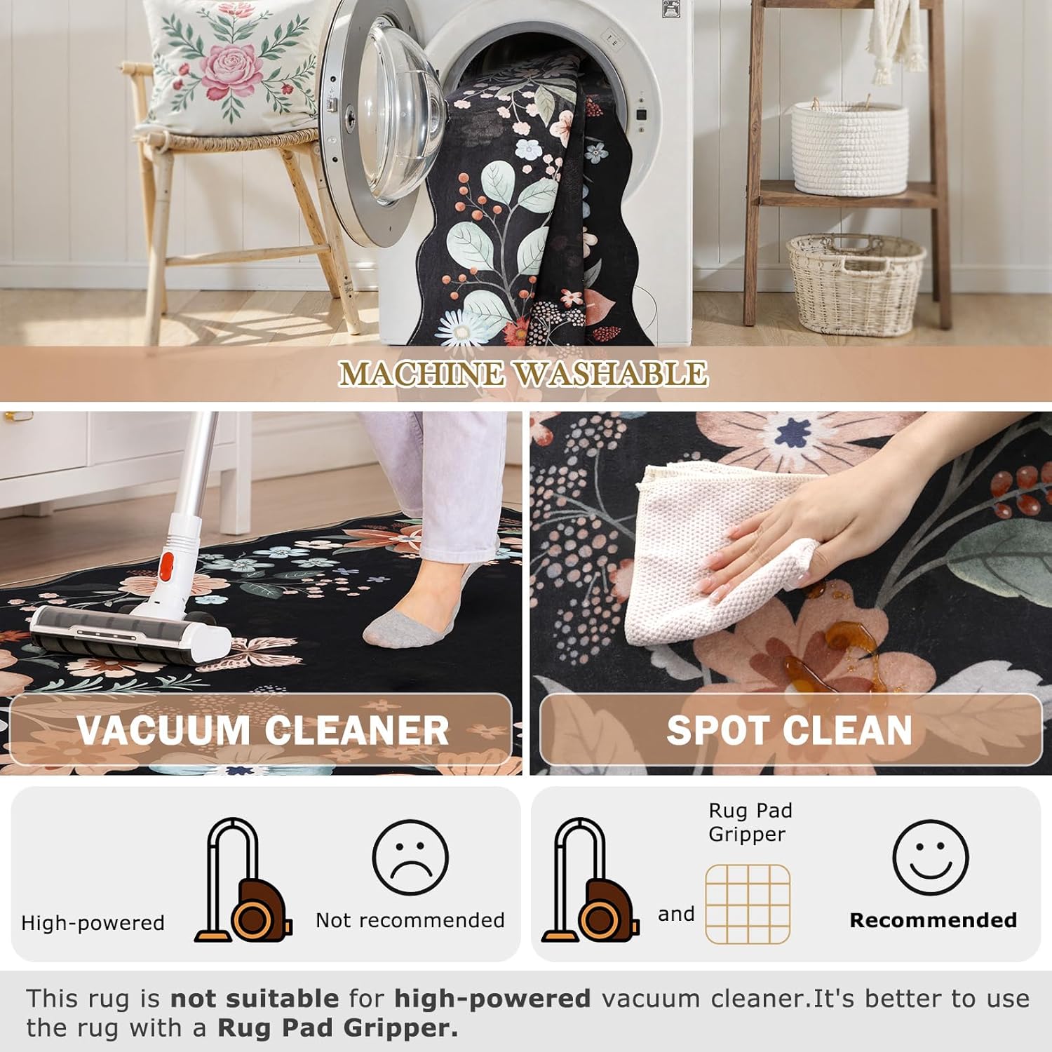 - Boho Floral Rug: Gorgeous and unique washable floral area rug, no more straight edges, delicate floral pattern adds a splash of color, adds beauty and class to any space, stylish and functional.