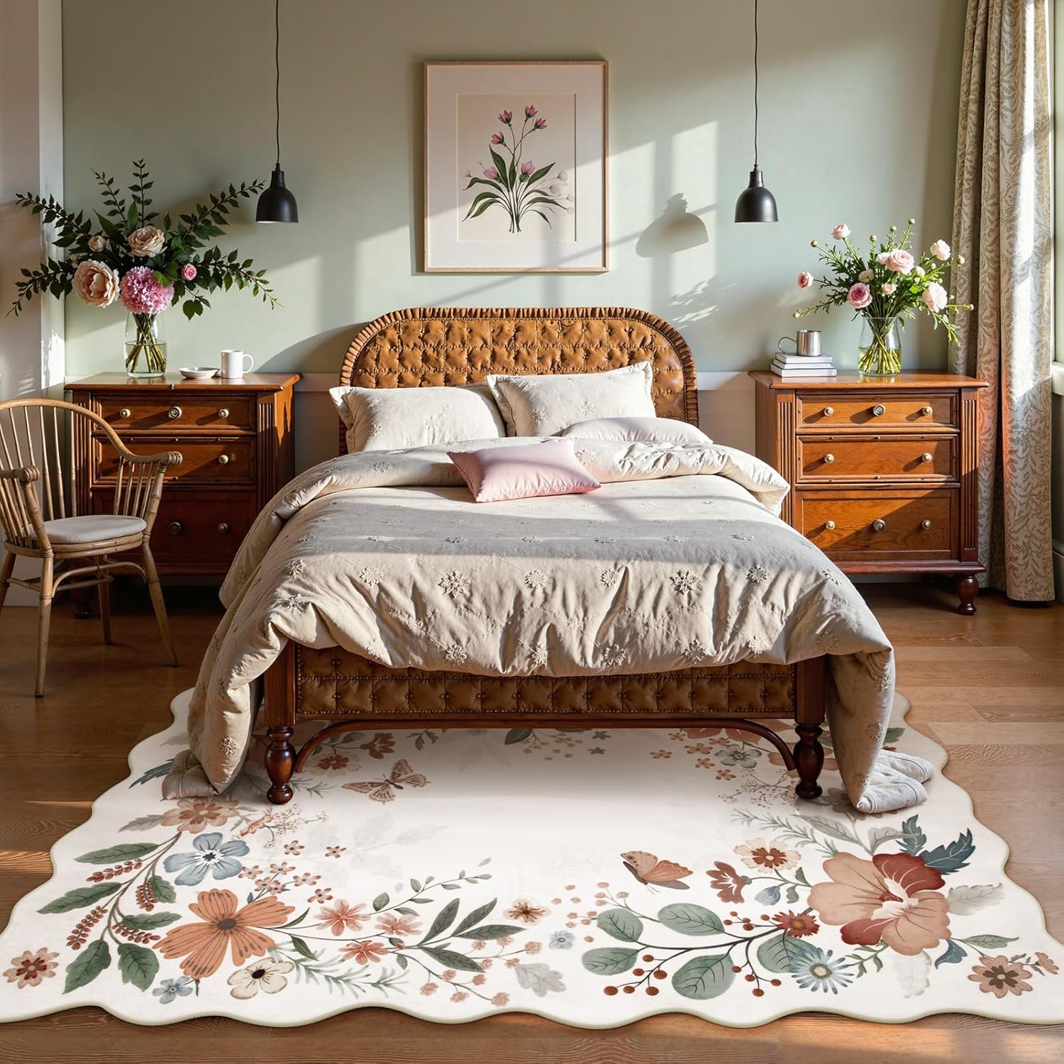 - Boho Floral Rug: Gorgeous and unique washable living room rug, no more straight edges, delicate floral pattern adds a splash of color, adds beauty and class to any space, stylish and functional.