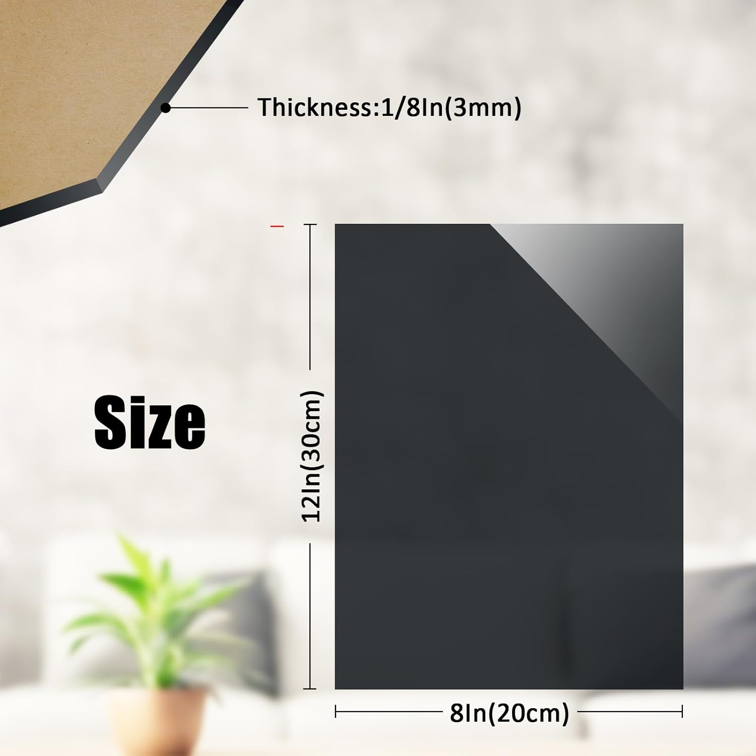 8×12In Clear Black Acrylic Sheet for Laser Cutting 3mm Thick Hard Laser Acrylic Sheet Black Pastic Sheet for Home Decor Sign,DIY Materials for Photo Frame