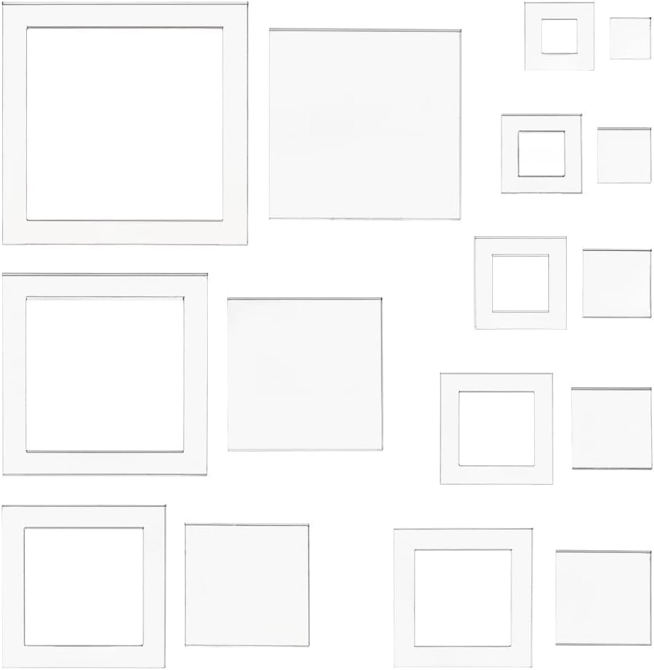 BENECREAT 16 Sizes Square Quilting Template, Acrylic Intricate Sewing Machine Ruler, Transparent Pressure Plate Router Template for DIY Hand Patchwork Cutting Craft, 6mm Thick