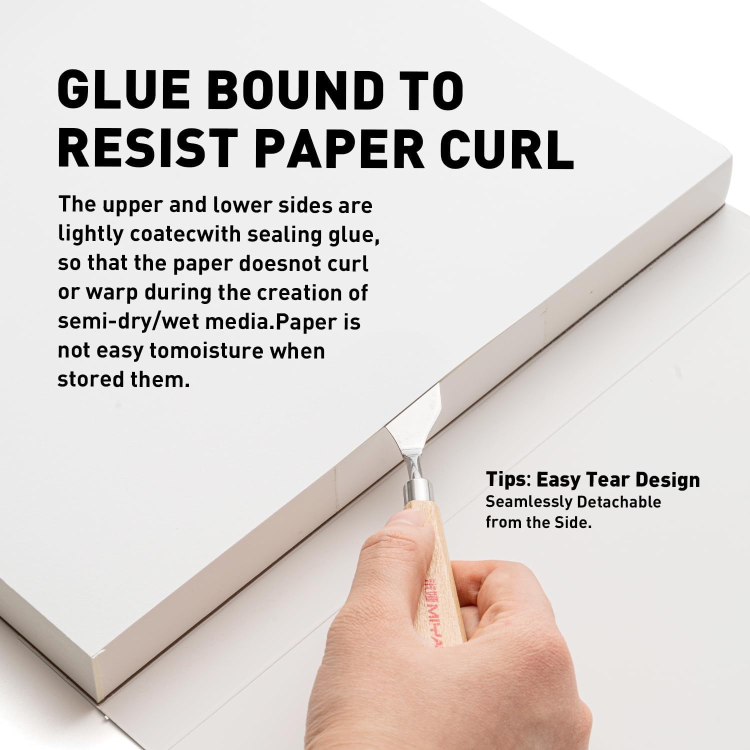 - 🎨Glue bound to resist paper curl:The upper and lower sides are lightly coated with sealing glue, so that the paper does not curl or warp during the creation of semi-dry/wet media. Paper is not easy to moisture when stored them.