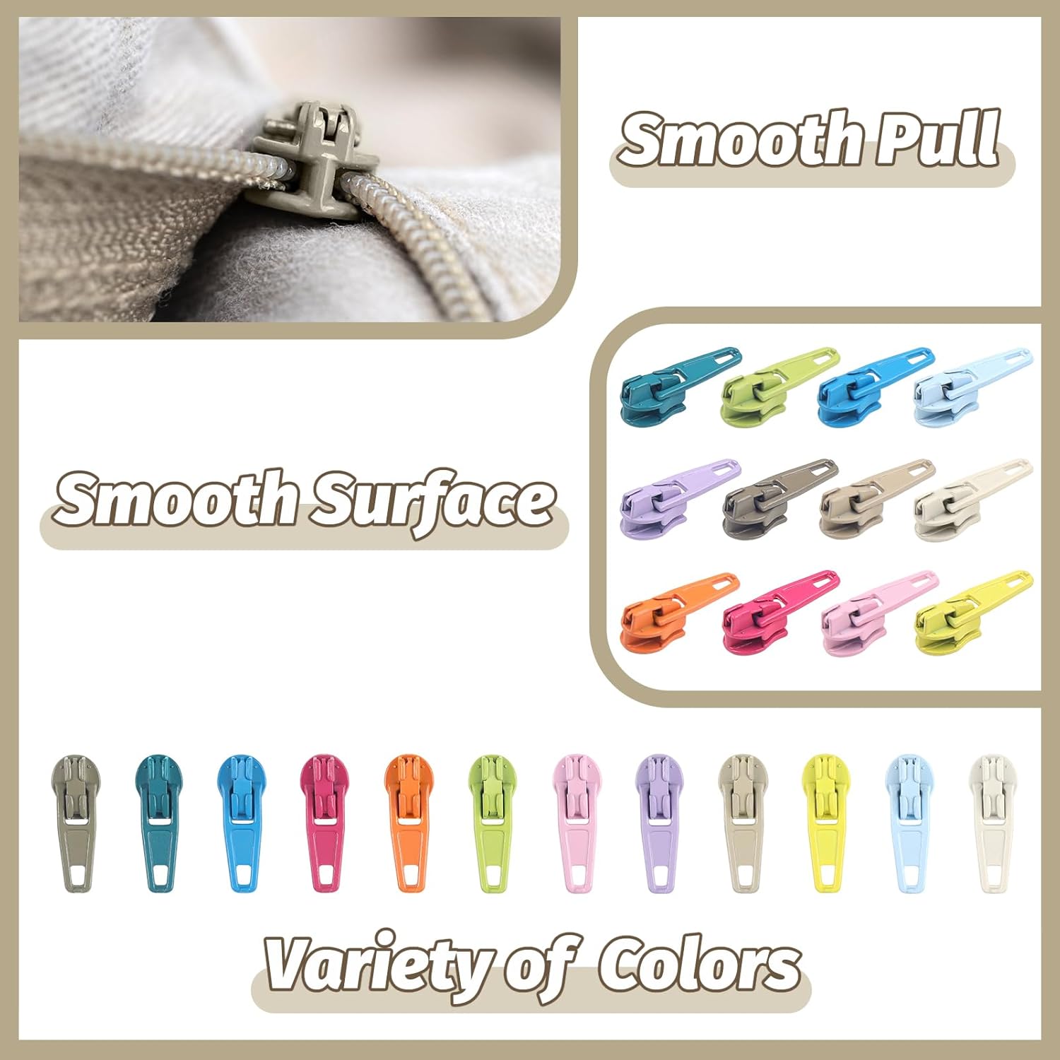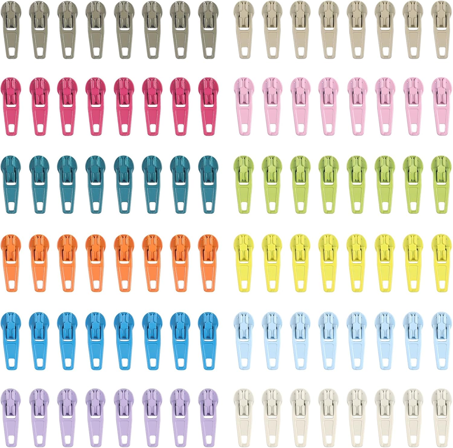 DOITEM 96Pcs Zipper Repair Kit Zipper Replacement 3# Zipper Pull Rescue Kit for Clothing Jackets Purses (12 Colors)