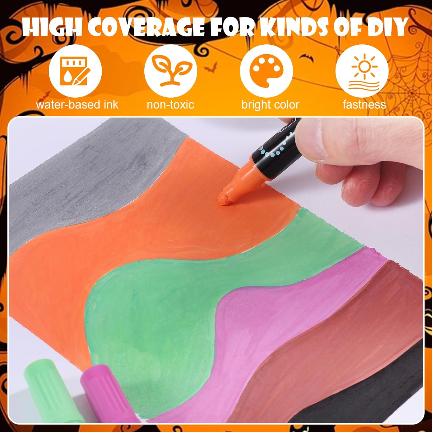 - Upgraded Waterproof and Easy to Use: Our new acrylic paint set do not require shaking or pressing the pen tip to release ink—just open the lid and start using them directly! Coloring Markers set are made with water-based ink, which providing a smooth, consistent application with even ink flow for a more effortless painting experience. The resulting artworks are brightly colored, waterproof, fade-resistant, and sun-resistant, making them ideal for long-term preservation.