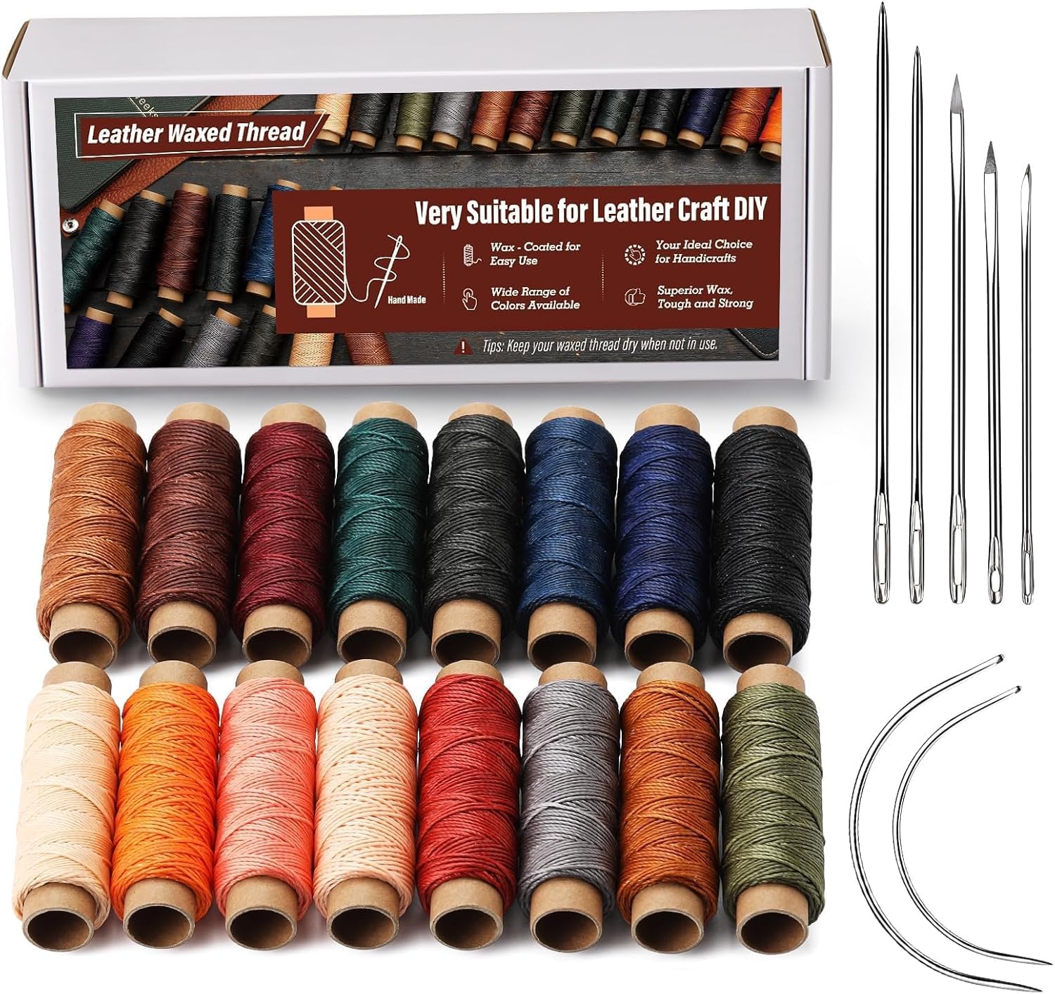 - 16 Vibrant Colors: Rich color selection provides a broad creative space for handcraft enthusiasts and professional craftsmen, the wax treatment contributes to this color - retention ability, ensuring that the vivid hues remain intact over time. 0.8mm round waxed thread is easier to pass through leather and provides sufficient tensile strength for stronger stitching