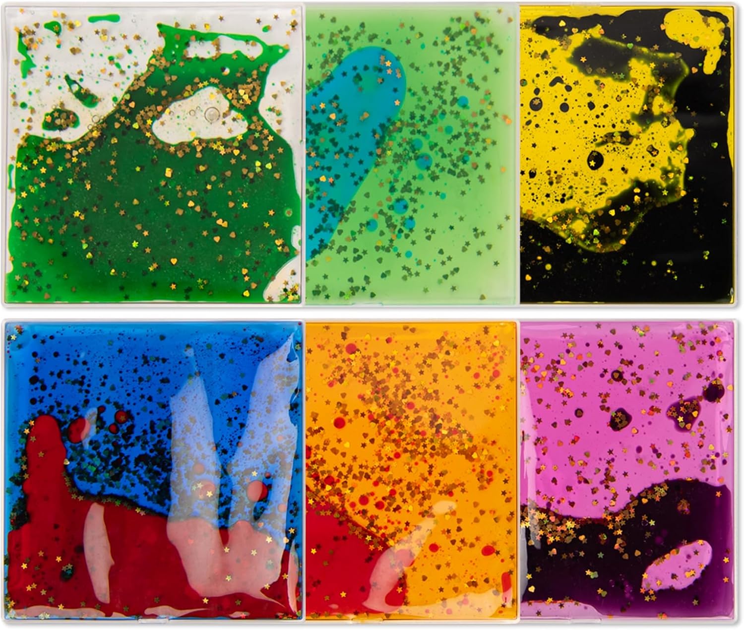 Art3d 6”x6” Square Sensory Fidget Liquid Motion Tiles for Kids, Toddler, Teens - Interactive Soft Gel Liquid Play Mats for Home, Schools, Playrooms, Multi-Pack of 6 Tiles
