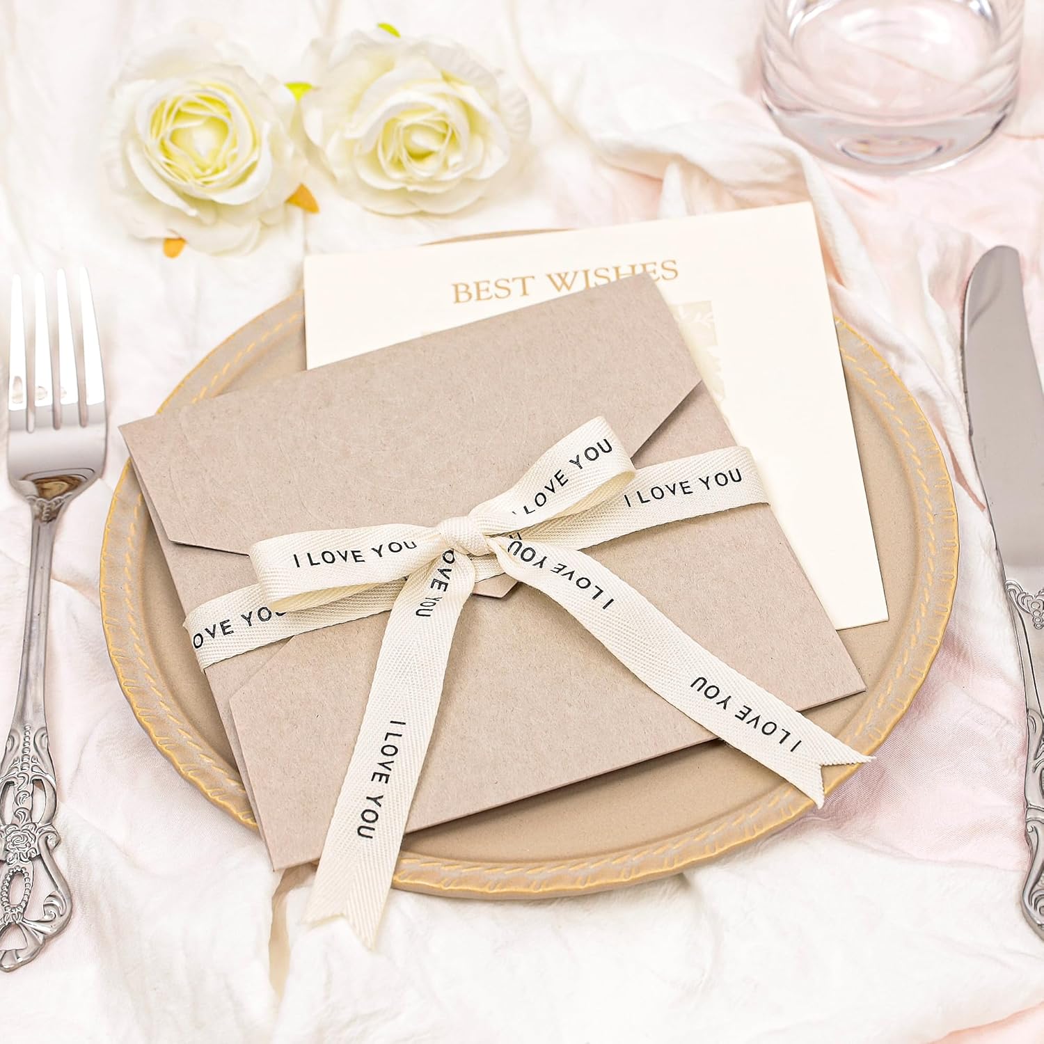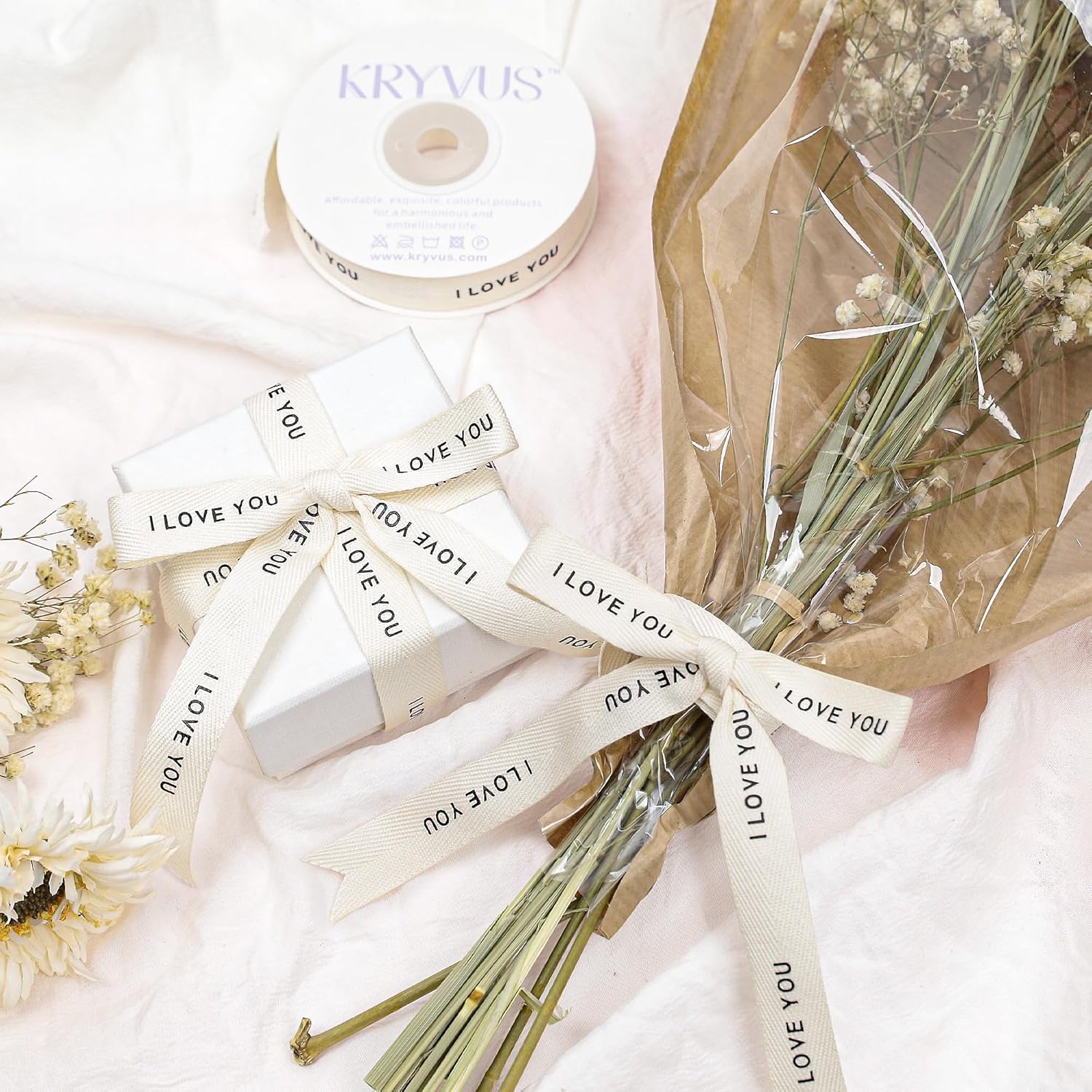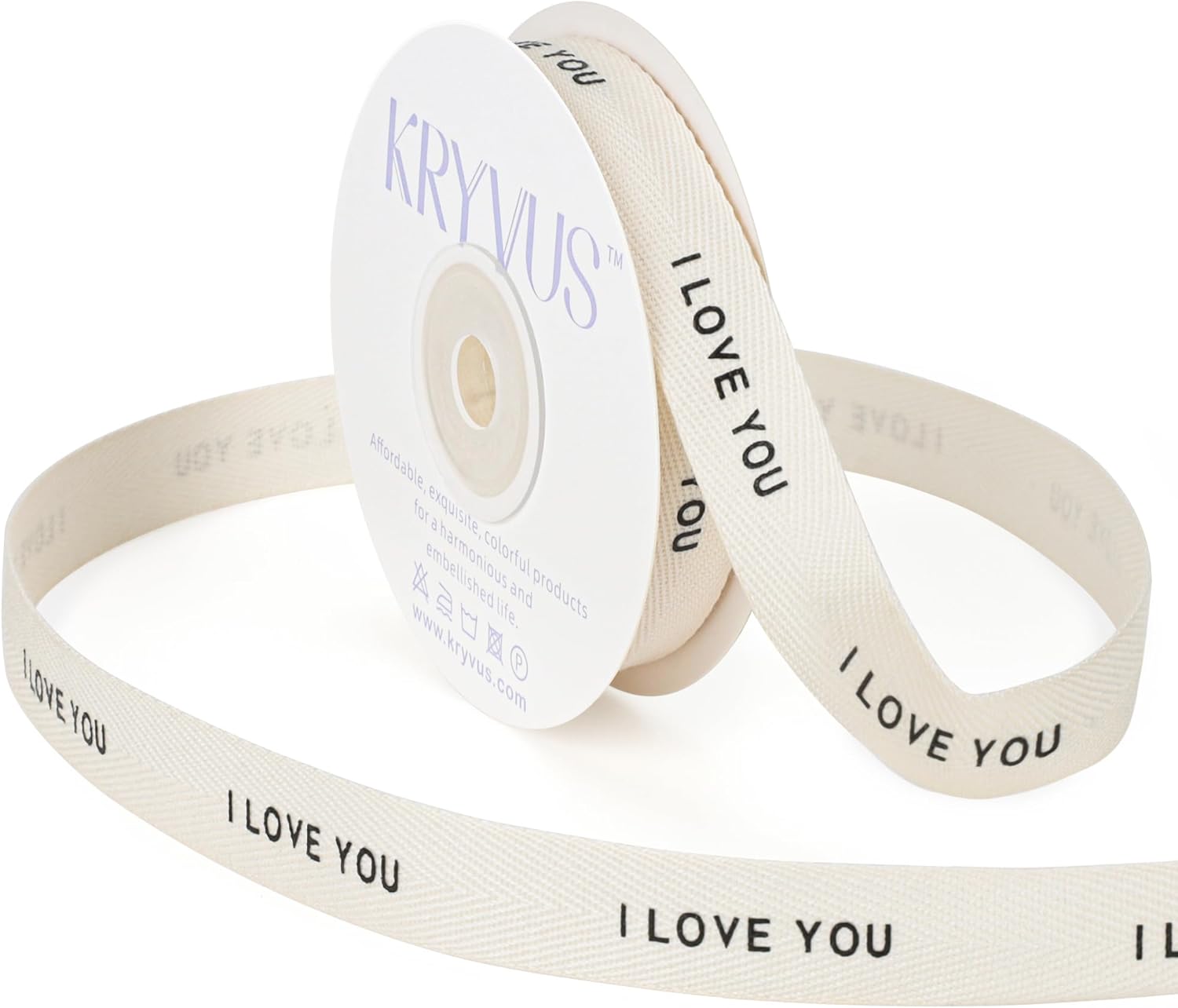 I Love You Ribbon - 5/8 Inch x 12 Yards Natural Twill Tape Ribbon, Cotton Herringbone Ribbons for Gift Wrapping, Birthdays, Weddings, Christmas, Anniversaries, Valentine's Day, Mother's Day