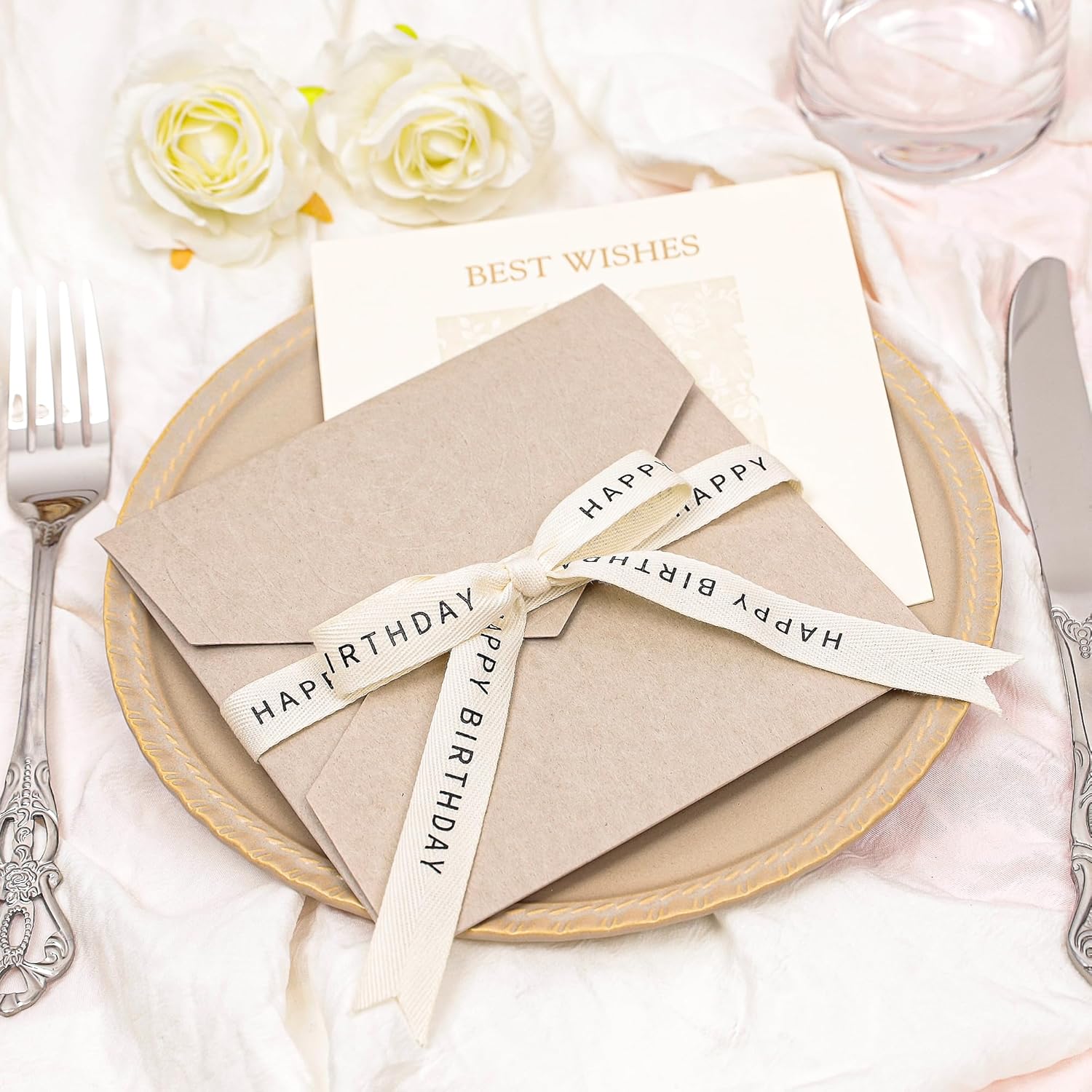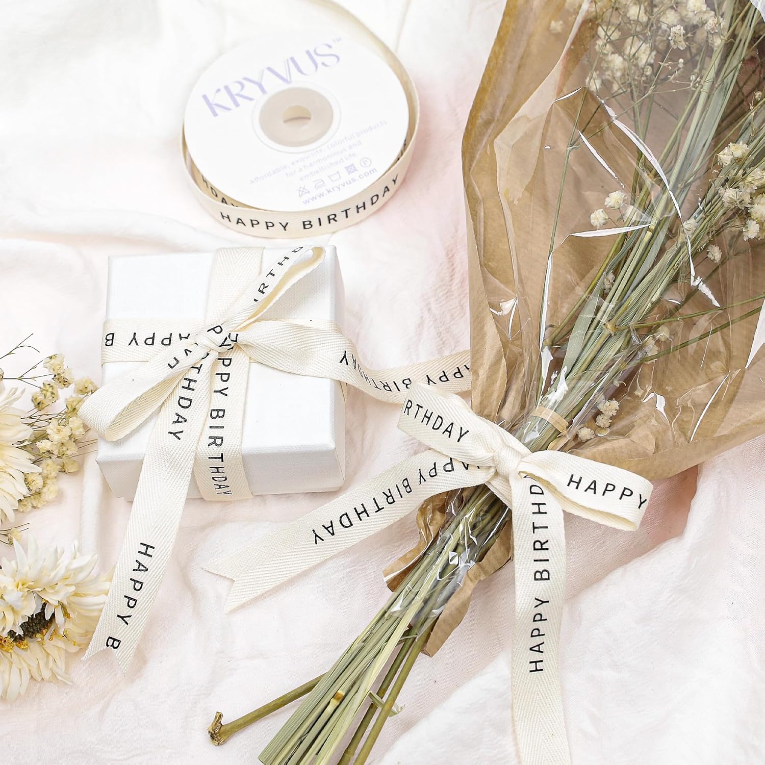 Happy Birthday Ribbon - 5/8 Inch x 12 Yards Natural Twill Tape Ribbon, Cotton Herringbone Ribbons for Gift Wrapping, Birthdays, Christmas, Anniversaries, Mother's Day