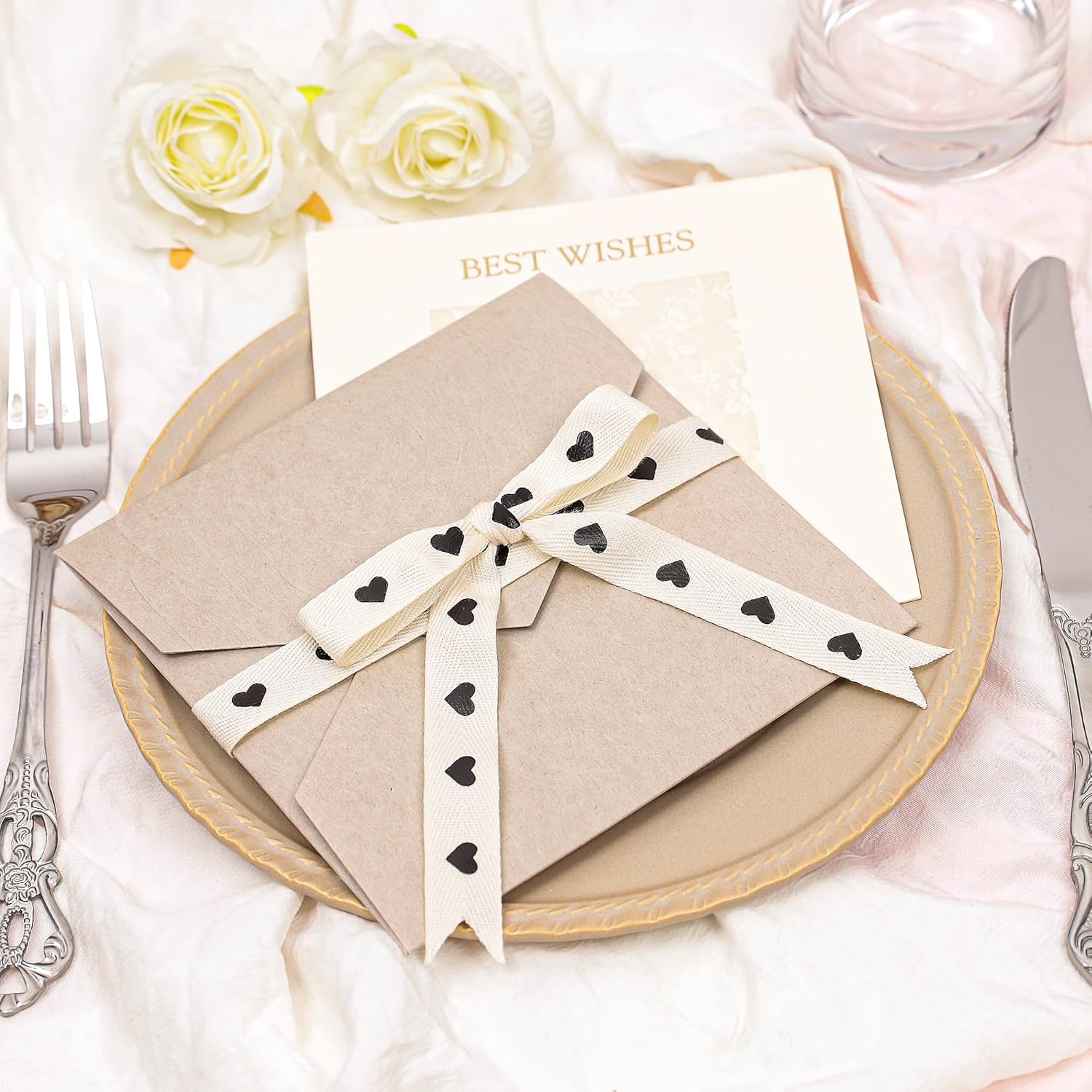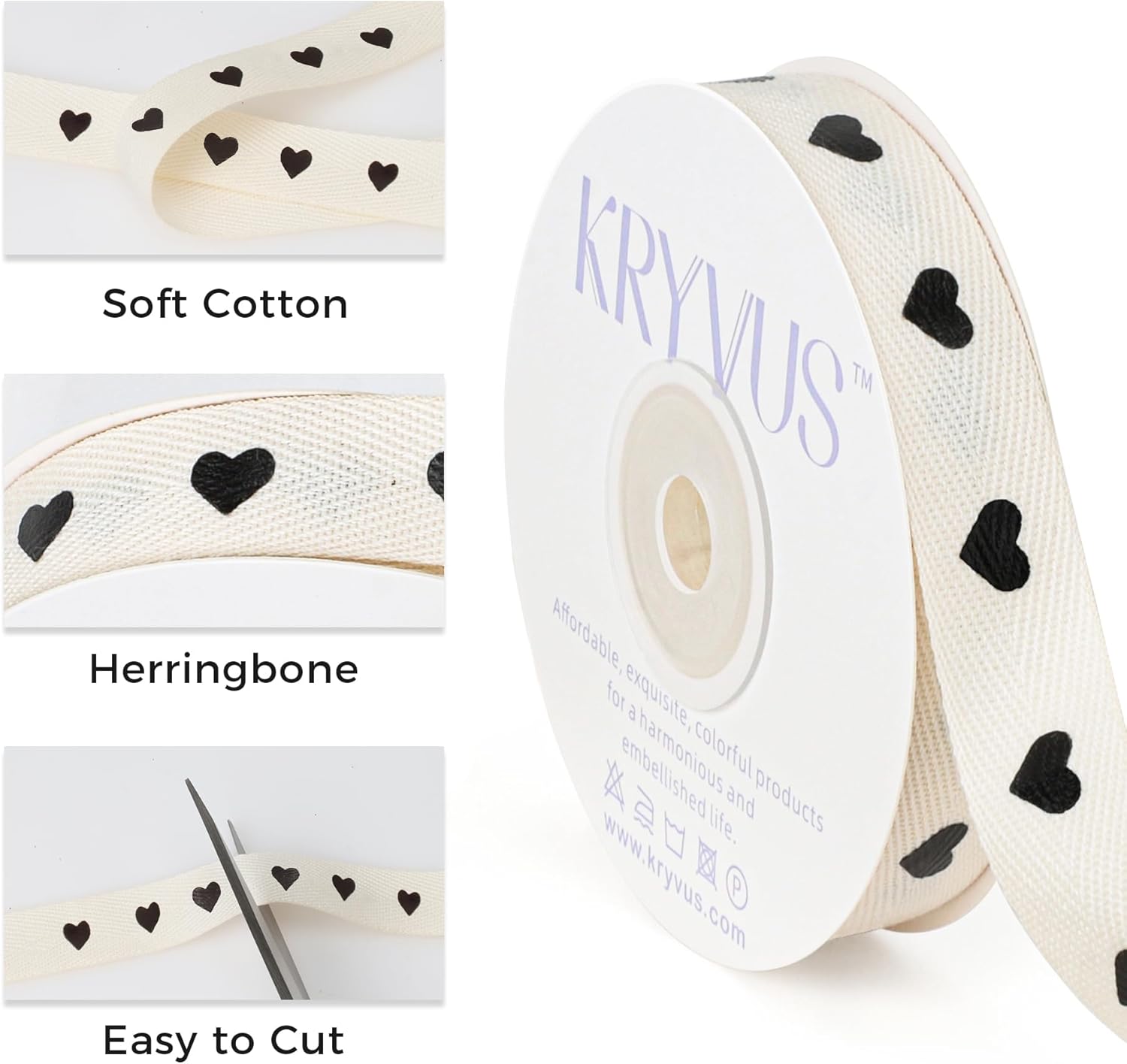Black Hearts Ribbon - 5/8 Inch x 12 Yards Natural Twill Tape Ribbon, Cotton Herringbone Ribbons for Gift Wrapping, Birthdays, Weddings, Christmas, Anniversaries, Valentine's Day, Mother's Day