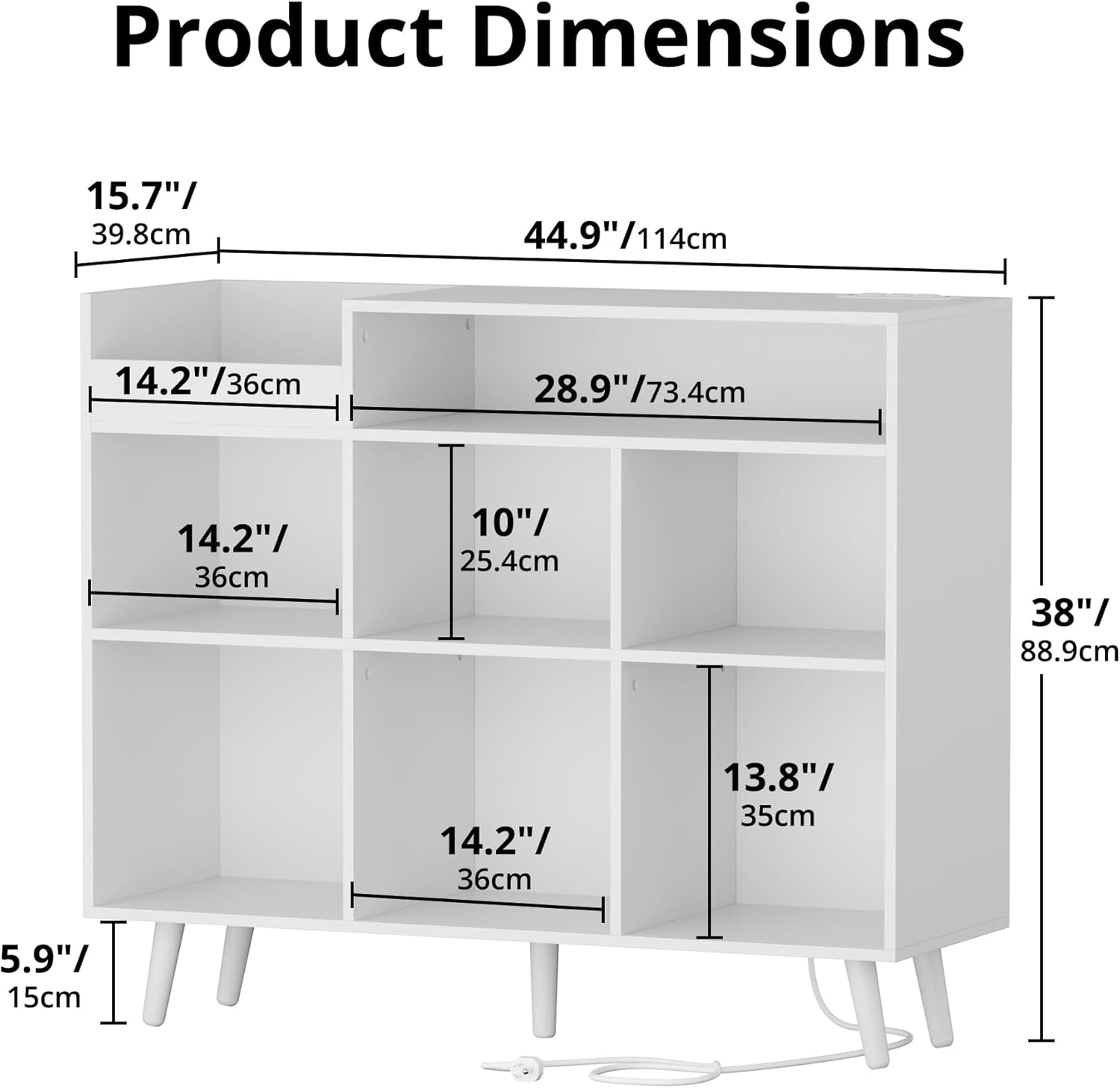 - Open Shelf & Built-in Outlet: The cube on the upper right comes with perforated holes and a 3AC power strip, which is convenient for sound system, audio component and cable management, use the charging station according to your needs. Perfect for living rooms, dining room, entryway, hallway and home office