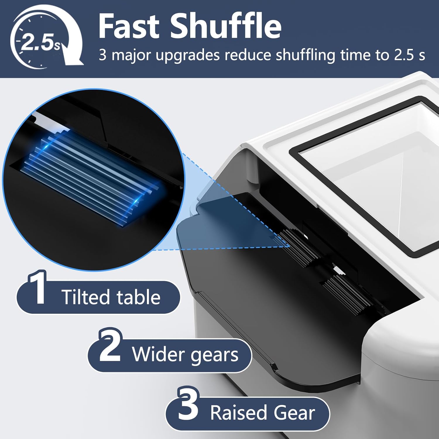 - Large-capacity Rechargeable Battery: The shuffler is equipped with 2000mAh rechargeable battery, you don't need to buy extra batteries, and the USB-C port can ensure you quick charging, making you experience the convenient gaming experience at anytime and anywhere by the automatic shuffler!