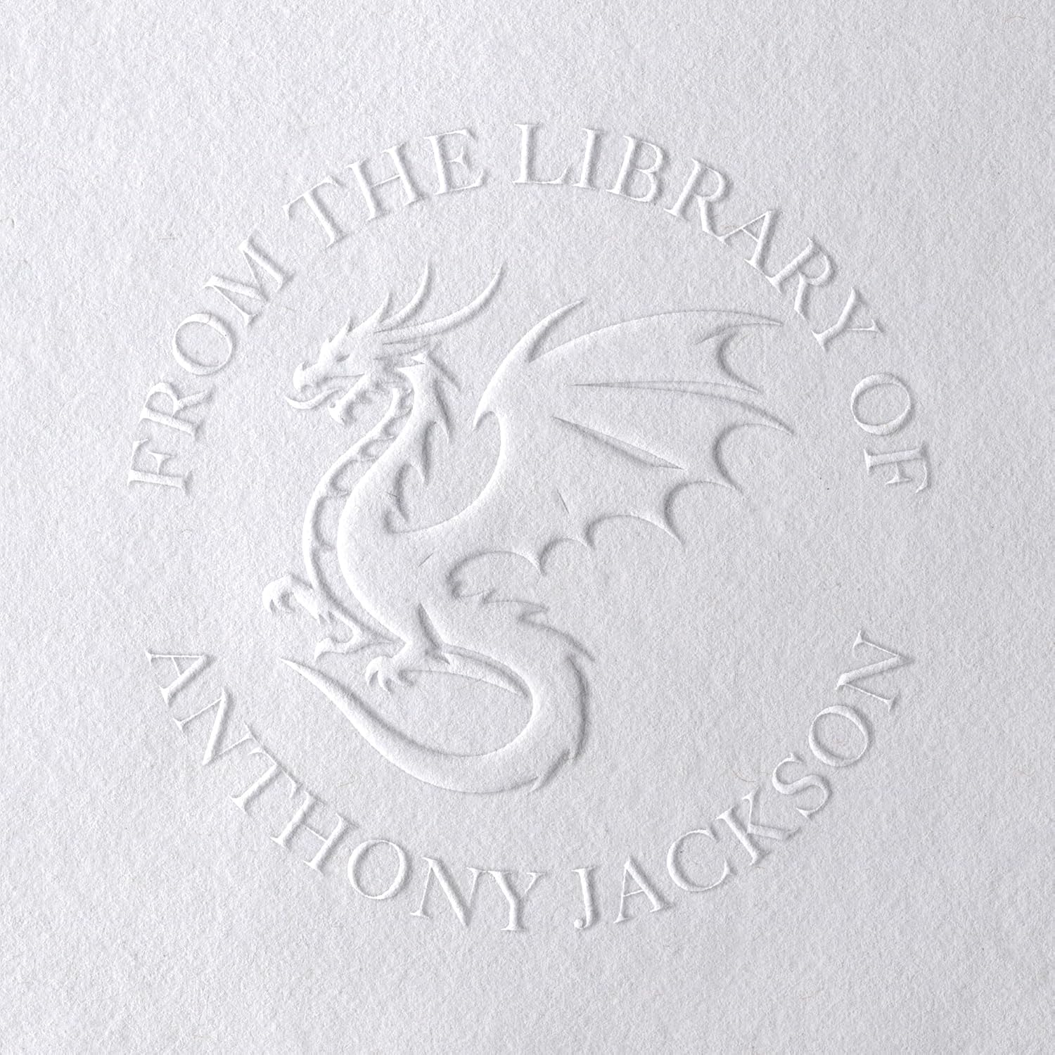 Dragon Book Embosser, Custom Round Library Book Embosser, Fantasty Fiction Dragon Ex Libris Embosser, Gift for Book Lover | Black or Pink Embosser (Dragon #1)