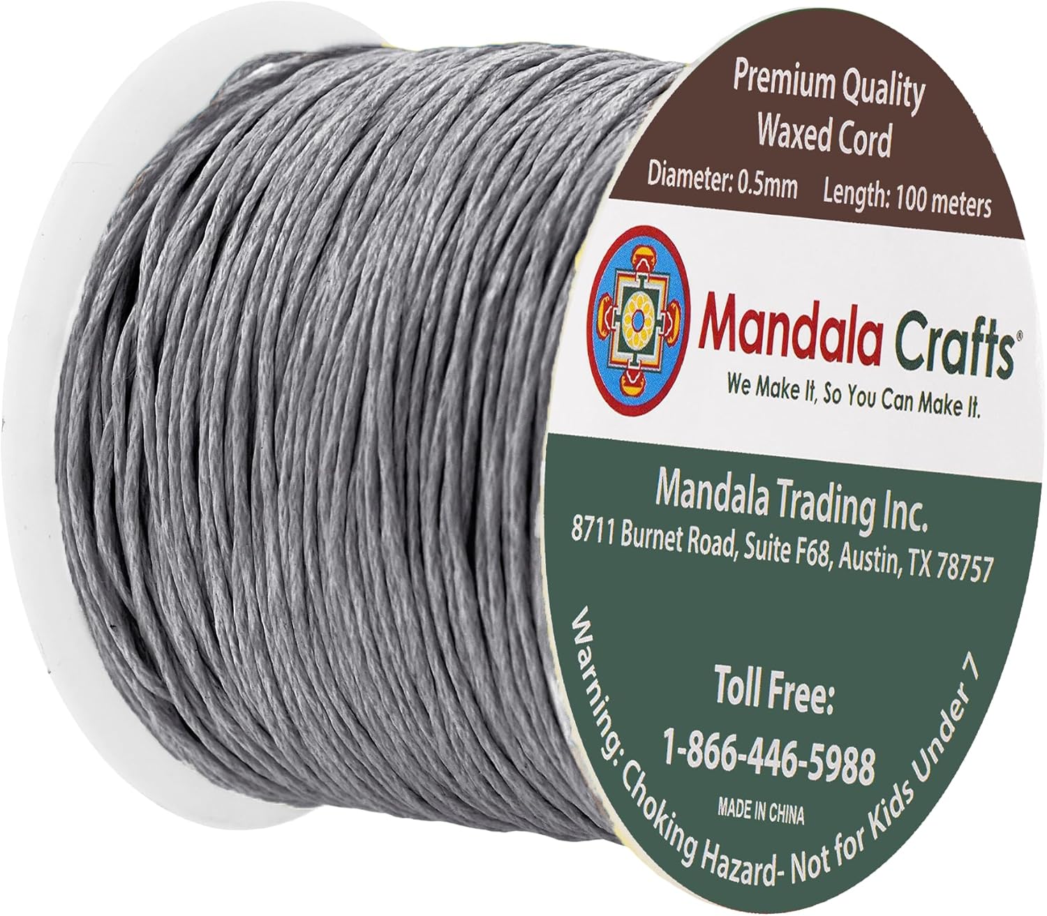 Mandala Crafts 0.5mm 109 Yards Traffic Gray Cotton Waxed Cord for Jewelry Making Bracelet Cord Waxed String - Beading String Thread Jewelry Cords for Necklaces String