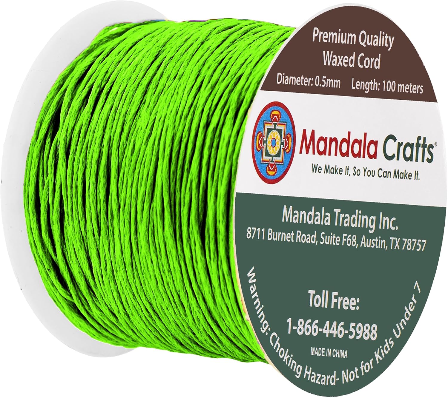 Mandala Crafts 0.5mm 109 Yards Lime Green Cotton Waxed Cord for Jewelry Making Bracelet Cord Waxed String - Beading String Thread Jewelry Cords for Necklaces String