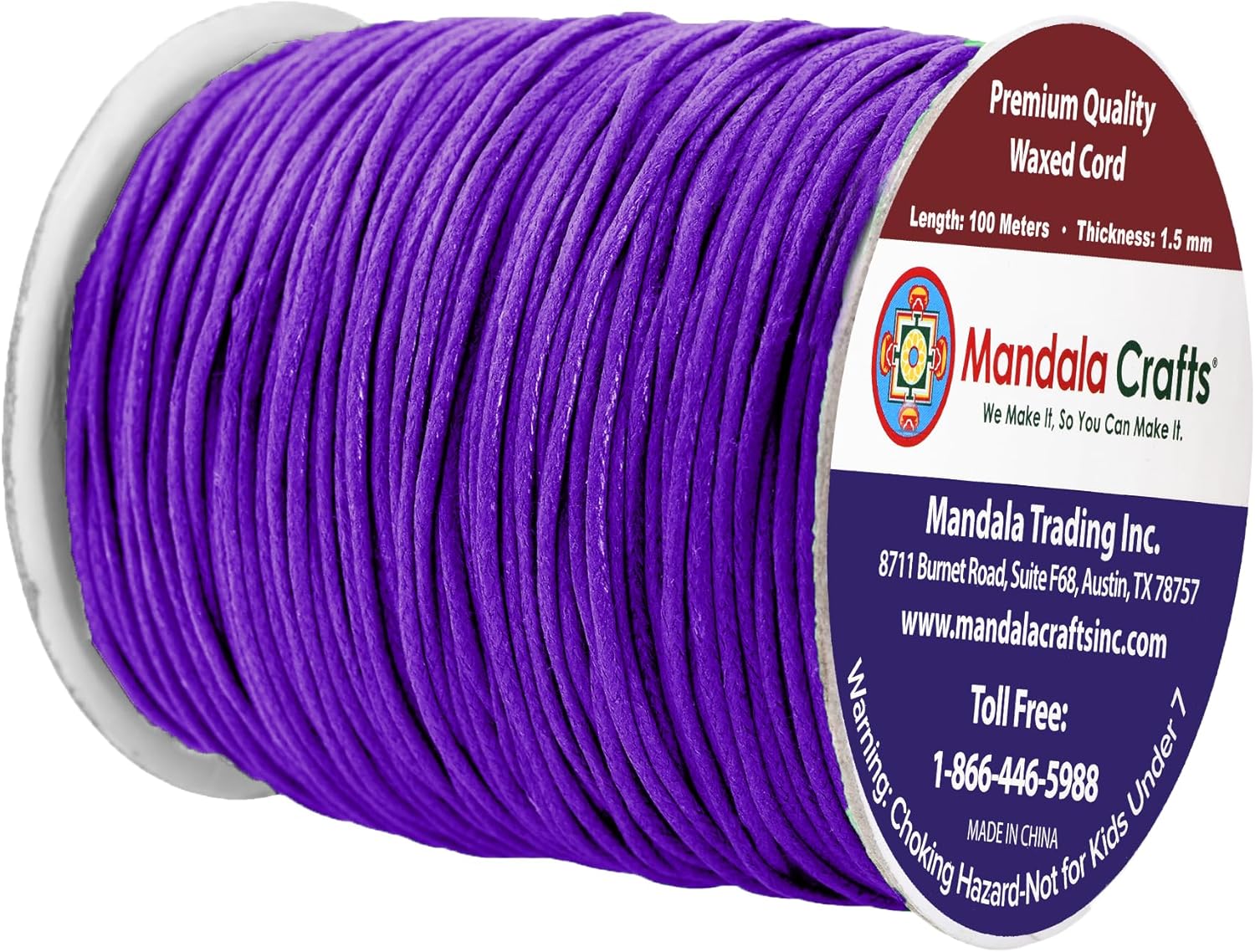 - Bulk Purple Waxed Cord Roll: The non elastic colorfast 1.5mm cotton cord with heat treatable ends is fraying resistant & bleed free. The continuous 3 ply 109 yds long 1.5mm jewelry waxed cord made from 100 percent cotton is easy to cut, tie, knot, or glue.