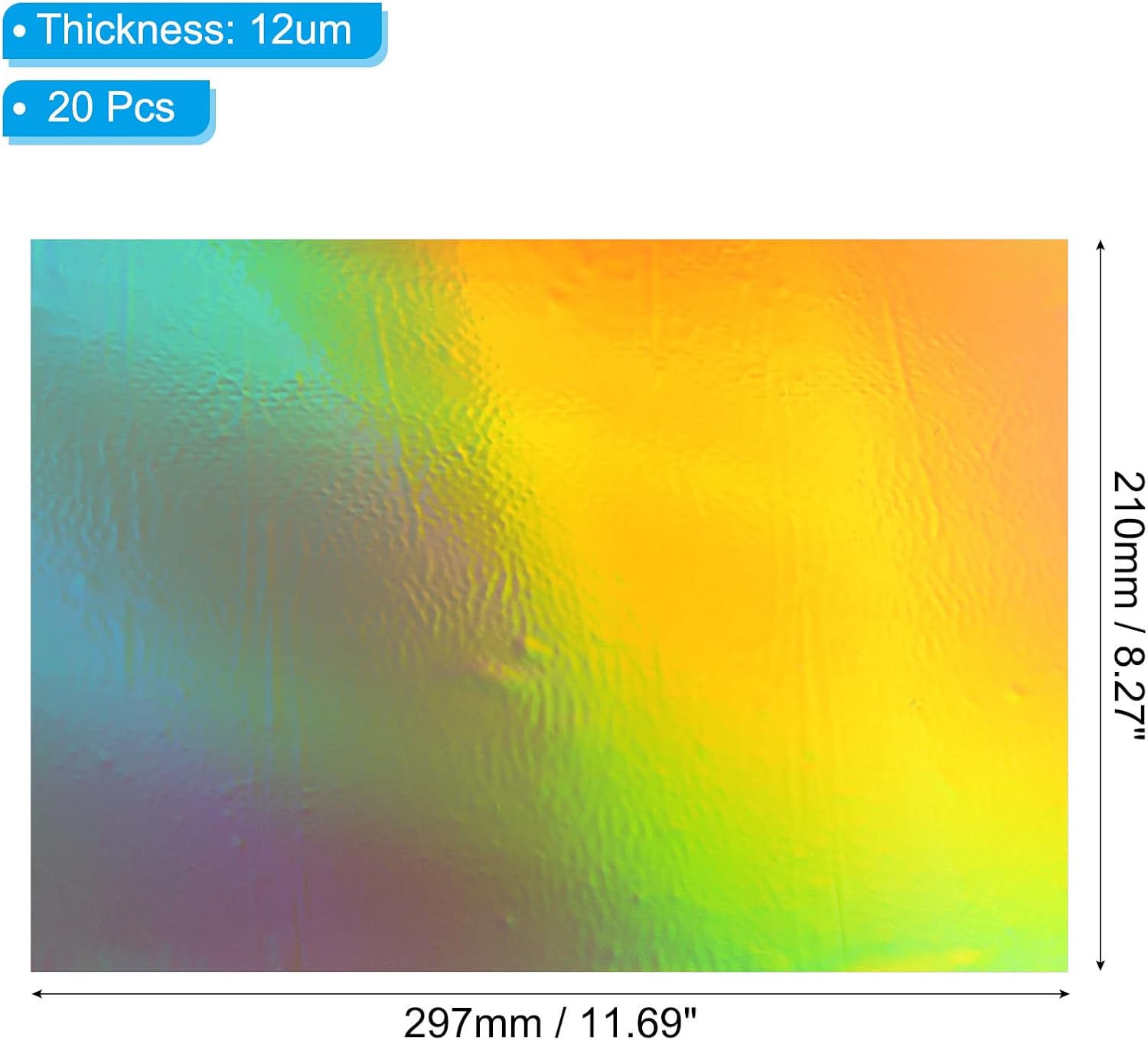 - Specification: Color: Laser Gold; Size: 297 x 210mm / 11.69 x 8.27 inch (L*W); Paper Thickness: 12um; Material: PET Plastic; Packing list: 20 Sheets x Hot stamping foil paper