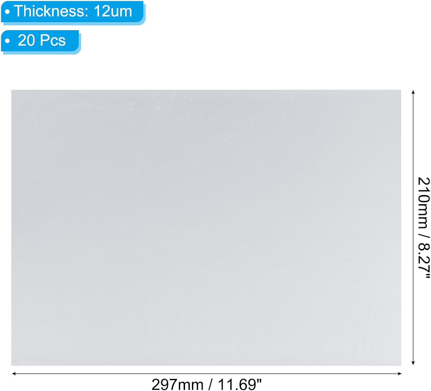 - Specification: Color: Matt Silver; Size: 297 x 210mm / 11.69 x 8.27 inch (L*W); Paper Thickness: 12um; Material: PET Plastic; Packing list: 20 Sheets x Hot stamping foil paper