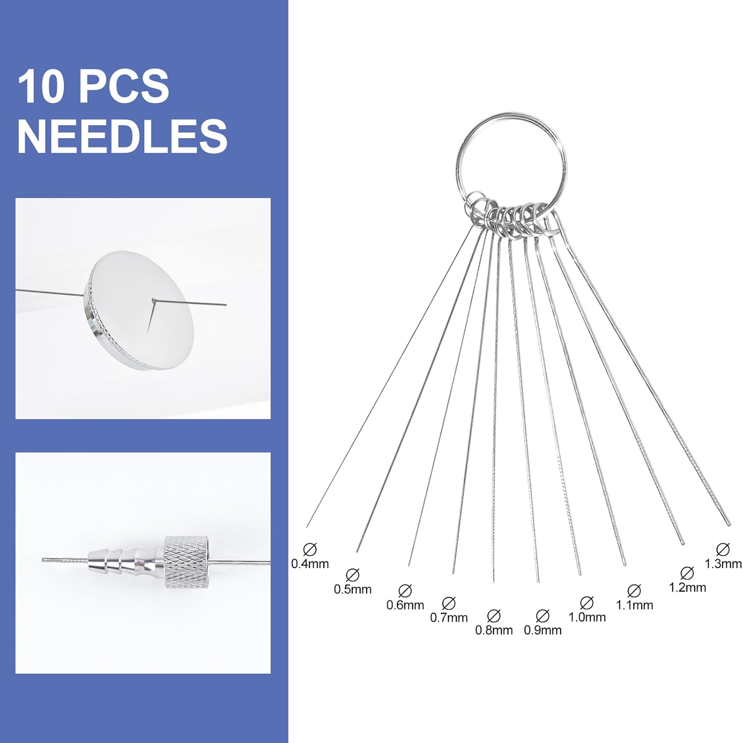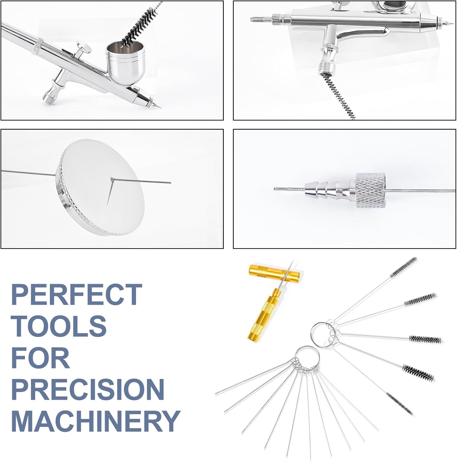 - STAINLESS STEEL CLEANING NEEDLES: 10 needles diameters range from 0.4mm to 1.3mm satisfy all your cleaning need. The gentle, rounded ends are scratch-free for your sprayer and airbrush cleaning.