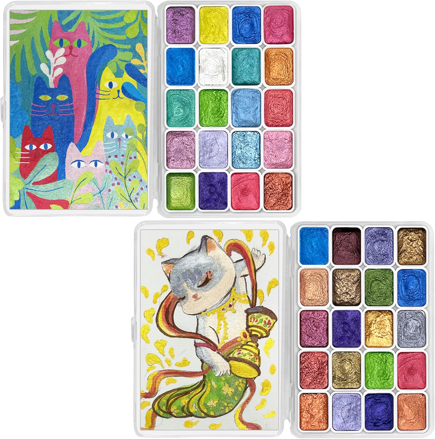 Mini Forestry Shifting Watercolor Painting Set - 40 Color Shifting Watercolor Paints, Shimmer Metallic & Glitter Watercolor Paints, Matisse & DunHuang Style