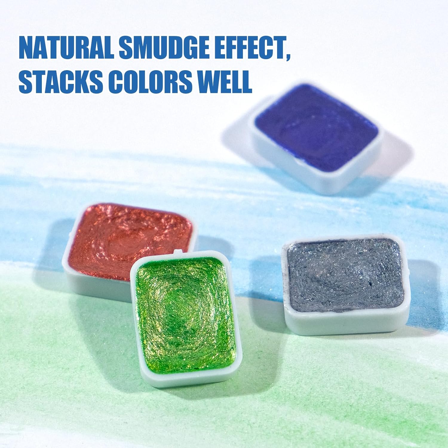 - 【Exceptional Shimmering Texture】: CraftyManor Pearlized Watercolors are formulated with premium, modified mica powder, resulting in a stunningly glossy finish. Free of acids and toxins, they are safe to use and will add a radiant touch to your artwork
