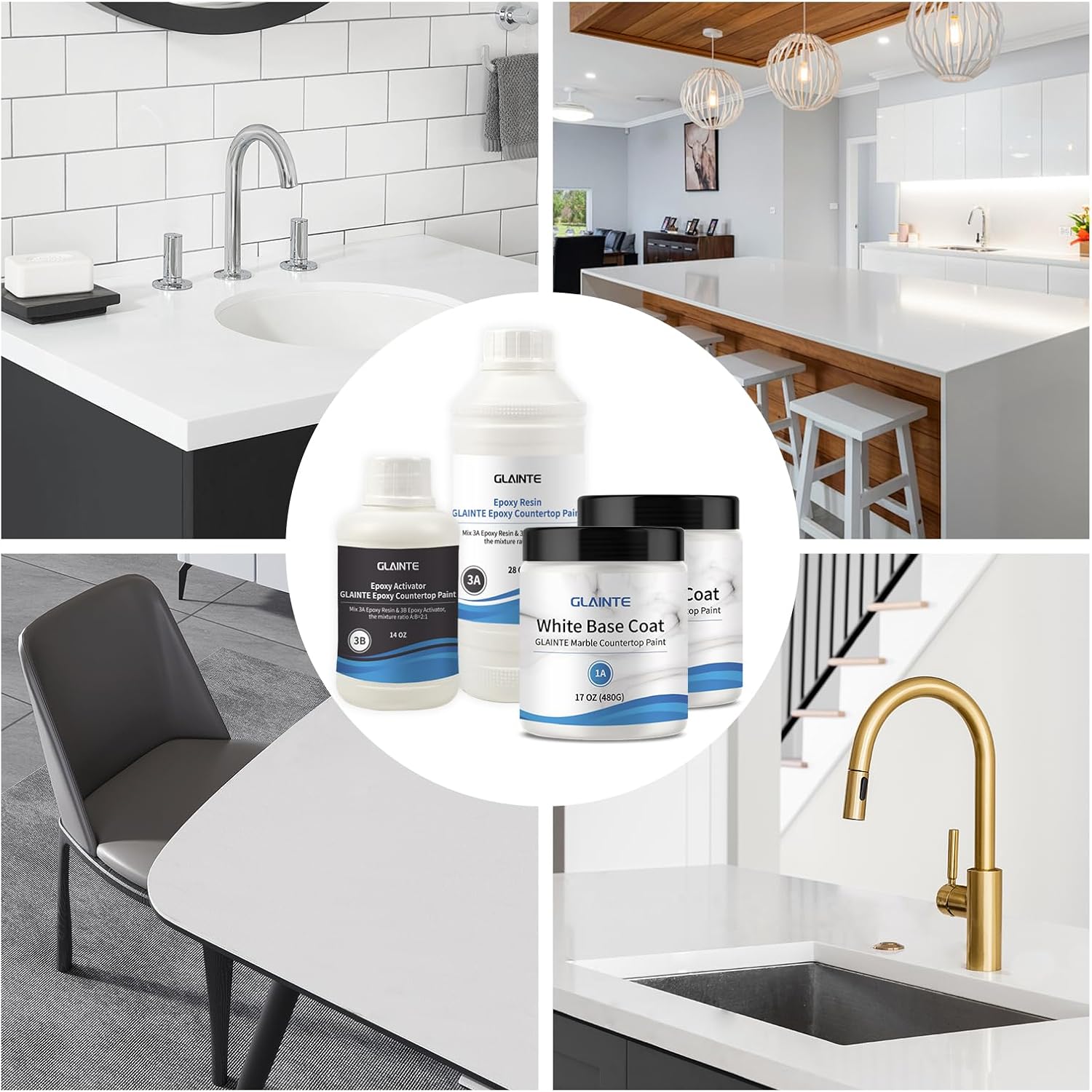 GLAINTE Bright White Marble Countertop Paint Kit Epoxy Countertop Refinishing Paint for Kitchen Bathroom Cover 38 Sq.Ft