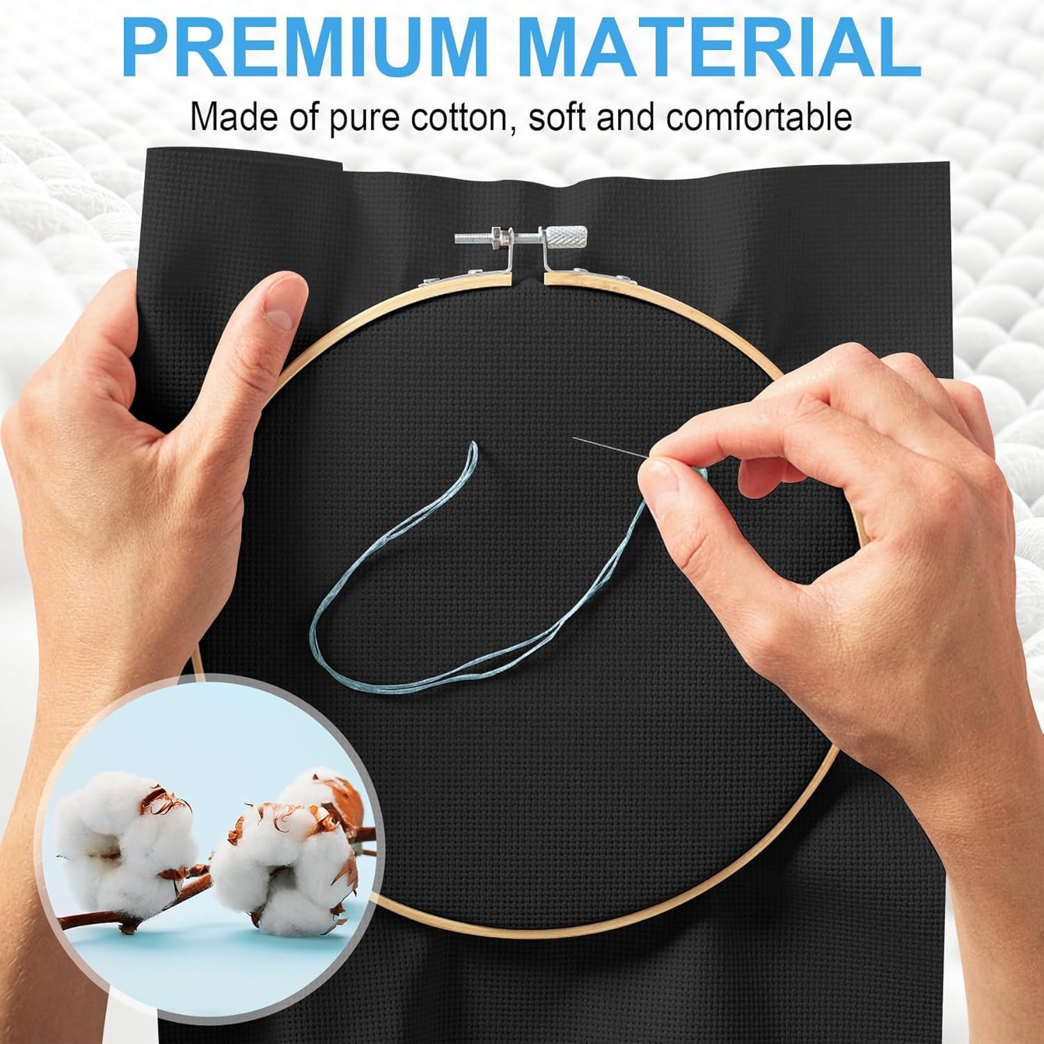 - 【Premium Material】Cross stitch fabric is made of pure cotton material with black design, stain resistant and washable. With good hardness, aida cloth is not easy to wear and tear, suitable for your long term use. Tips: After embroidery, you can soak cross stitch in warm water and it will become softer
