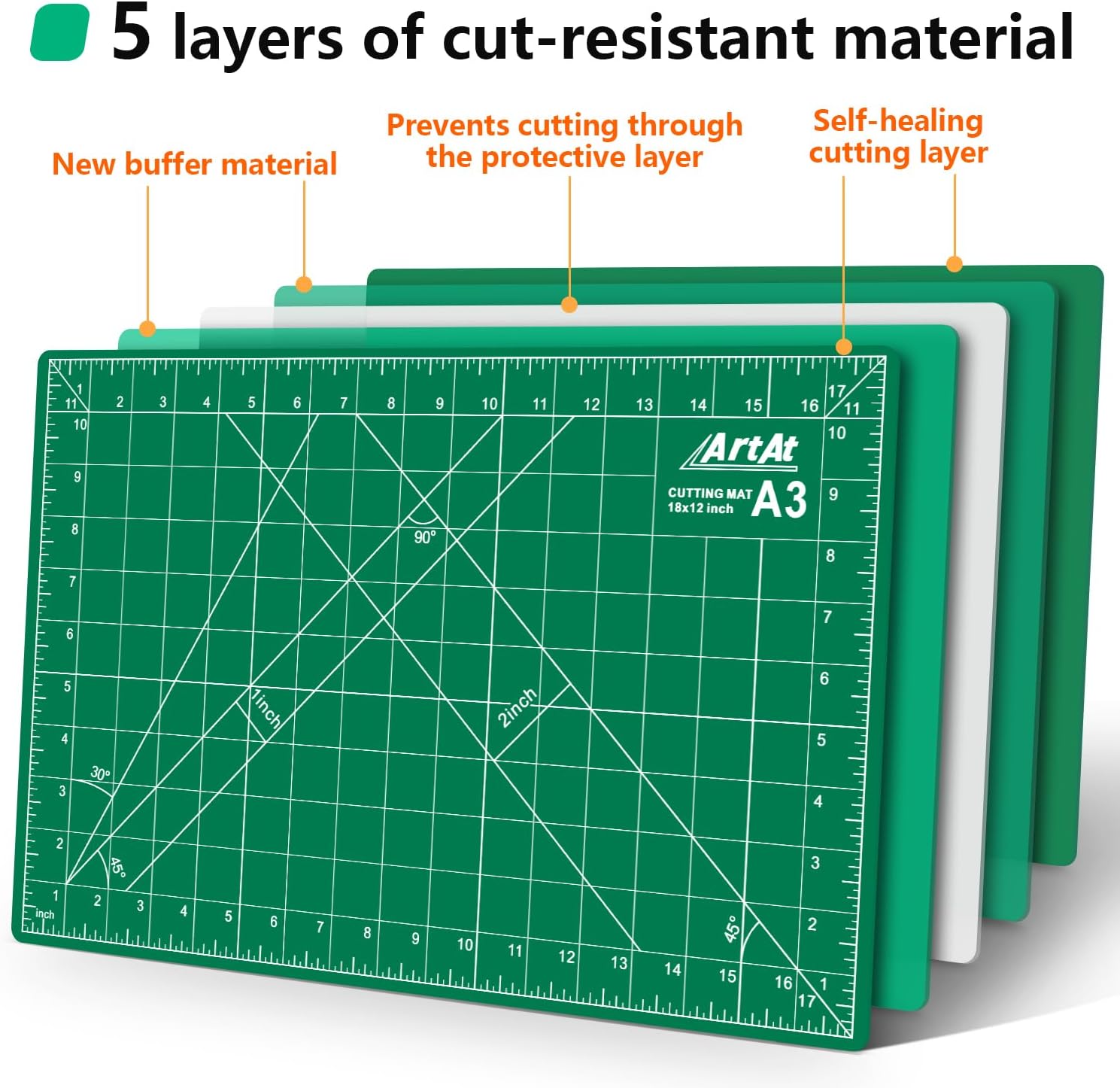 - 【5-Layer Premium PVC Construction】Thicker than standard mats (1.5mm per layer), these scratch-resistant mats automatically "heal" from blade marks, maintaining smooth surfaces project after project.