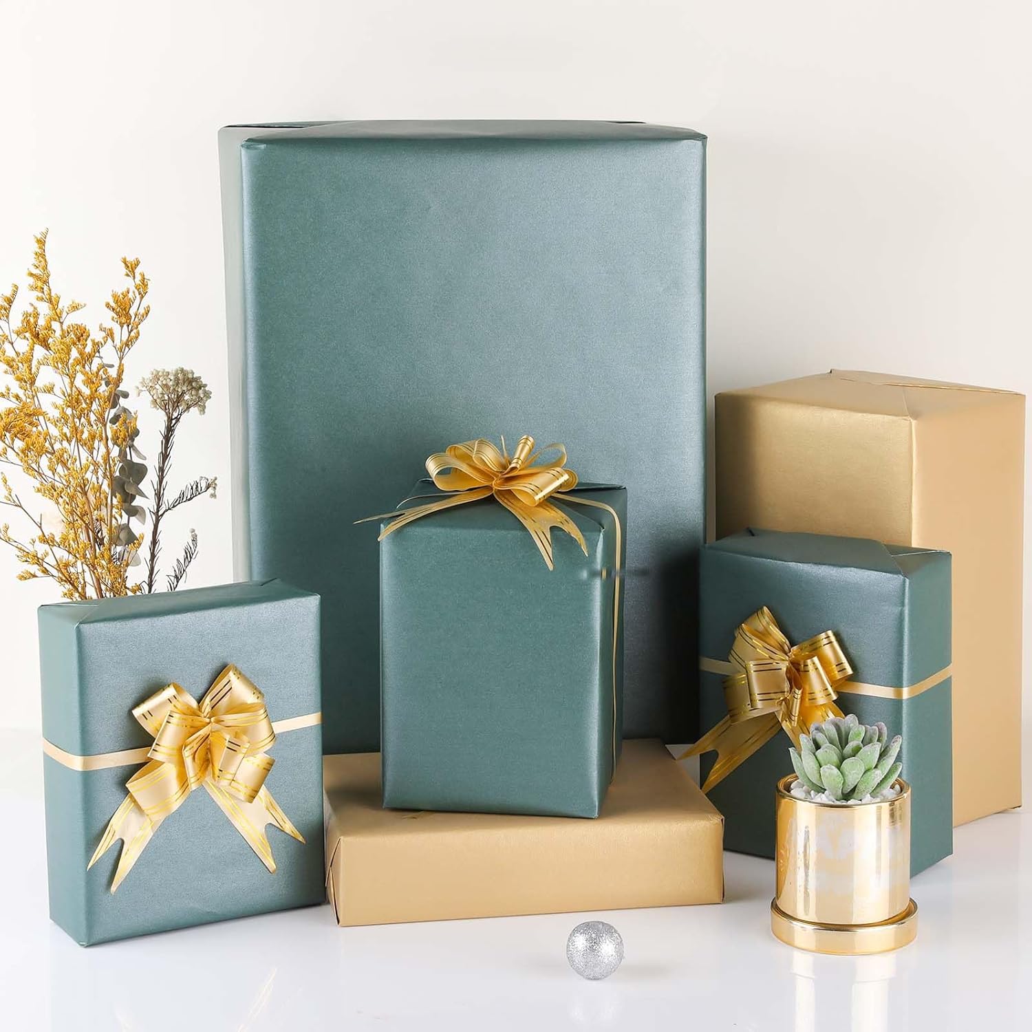 NESCCI Dark Green & Gold Matte Wrapping Paper,Double Sided Solid Color Pearly-Lustre Paper,Gift Wrapping Paper,Perfect for Wedding,Valentine's Day,Birthday,Christmas,Baby Shower(17 Inches X 32.8 Feet)