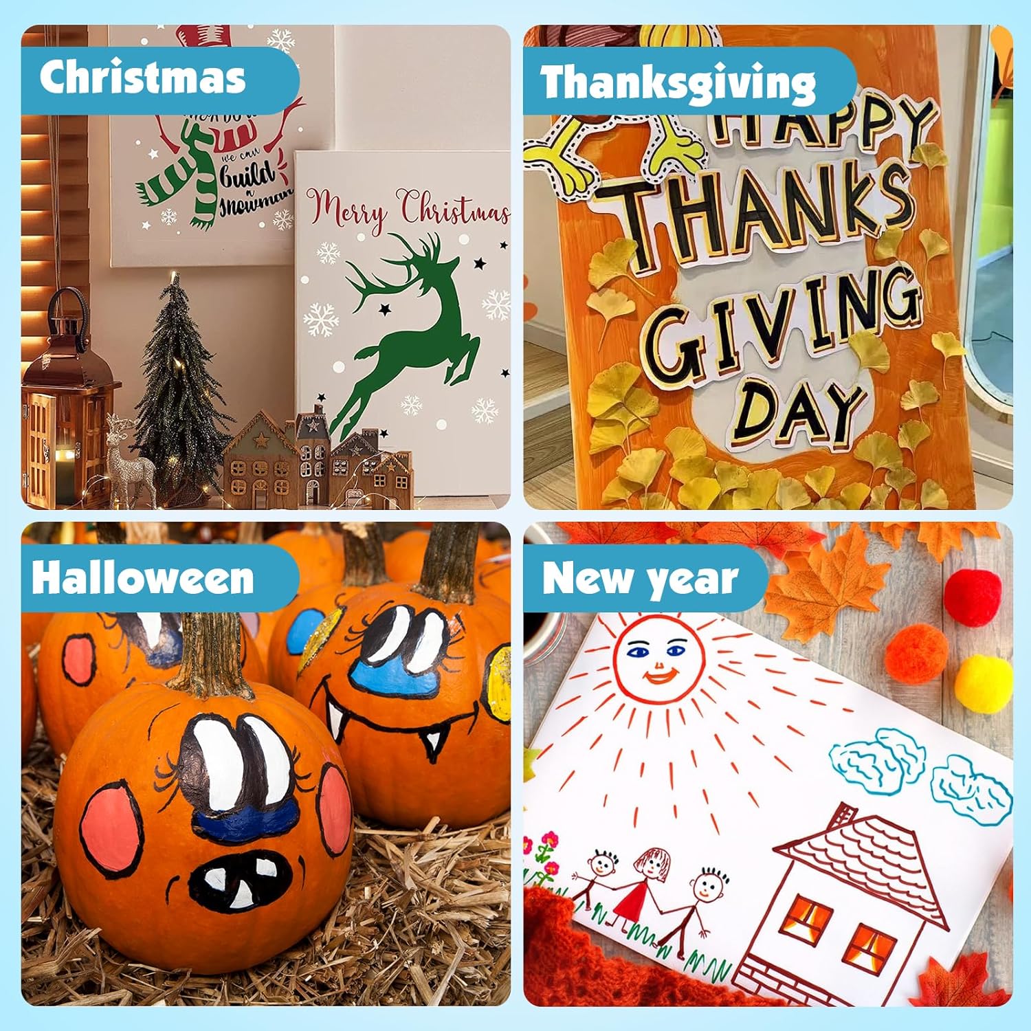 - 【DIY Gift】The bright colors make our acrylic pen works more vivid and interesting, making them perfect for DIY gifts.You can use it to design your bullet diary, plan book, scrapbook, Christmas card, birthday gift, or any DIY craft project. It is also suitable for creating various festivals, such as Halloween, Thanksgiving, Christmas, etcv
