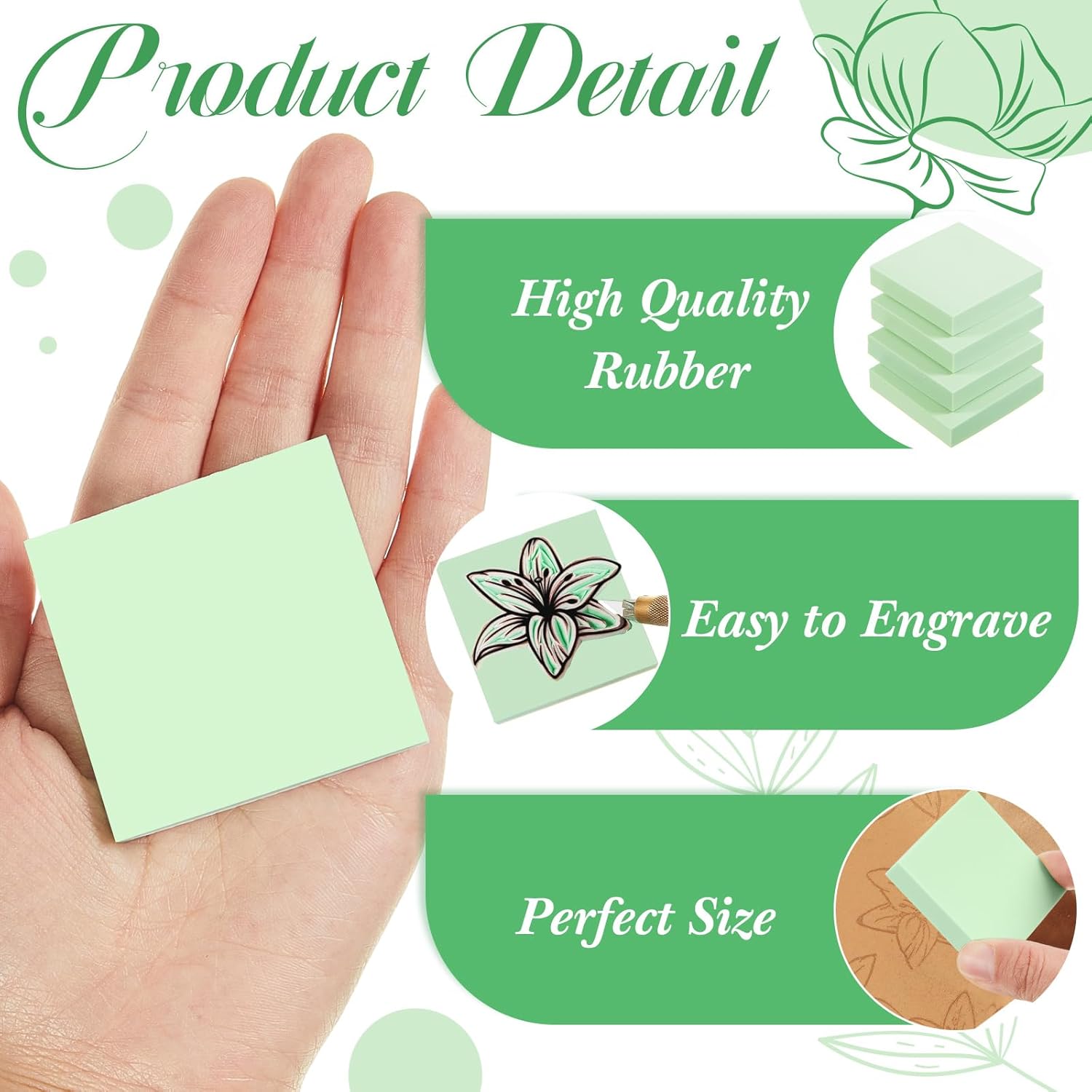 Frienda 24 Pcs 2" x 2" Rubber Carving Blocks Linoleum Blocks for Printmaking, Stamp Making, DIY Crafting, Scrapbook, Painting, Soft and Easy to Carve (Mint Green)