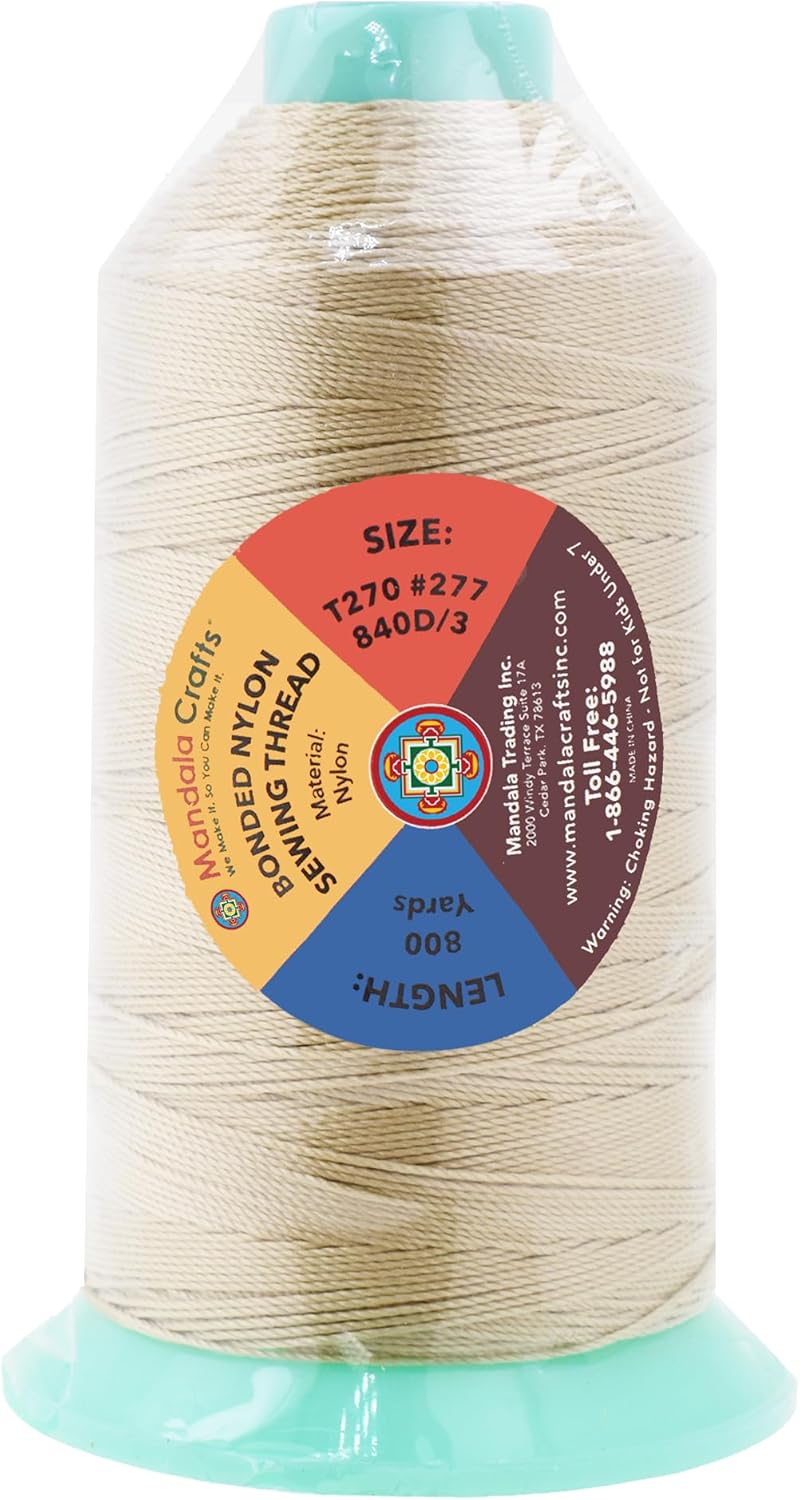 Mandala Crafts Bonded Nylon Thread Cream Heavy Duty Sewing Threads - 800 YDs Size 277 840D T270 Tex 270 Thread for Leather Jeans Weaving Outdoor Marine Upholstery Threads