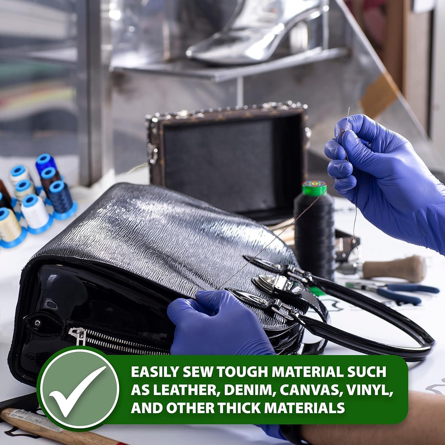 - Cream Heavy-Duty Thread for Upholstery & Quilting: The v138 bonded nylon thread serves as great extra strong sewing thread for canvas, webbing, fabric, vinyl, suede, & fur, heavy thread for coats, khaki pants, rugs, or sofas, & leather sewing thread.