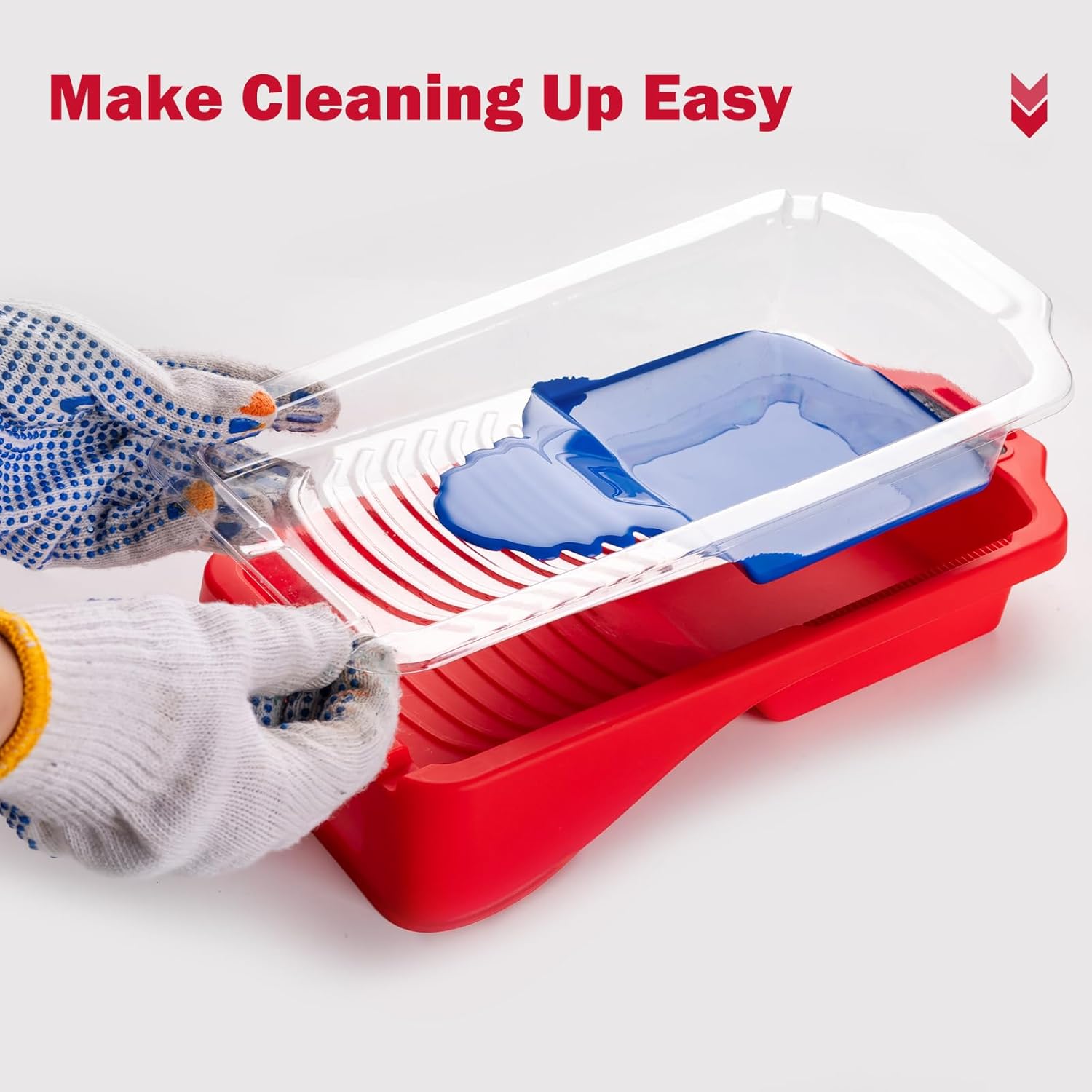 - Recycled material for tray: Our paint tray and liners are made from PP with high strength and toughness,bearing 100kgs, so they' re not easy to deform, corrosion resistance, anti-cracking, durable, recycled and reusable