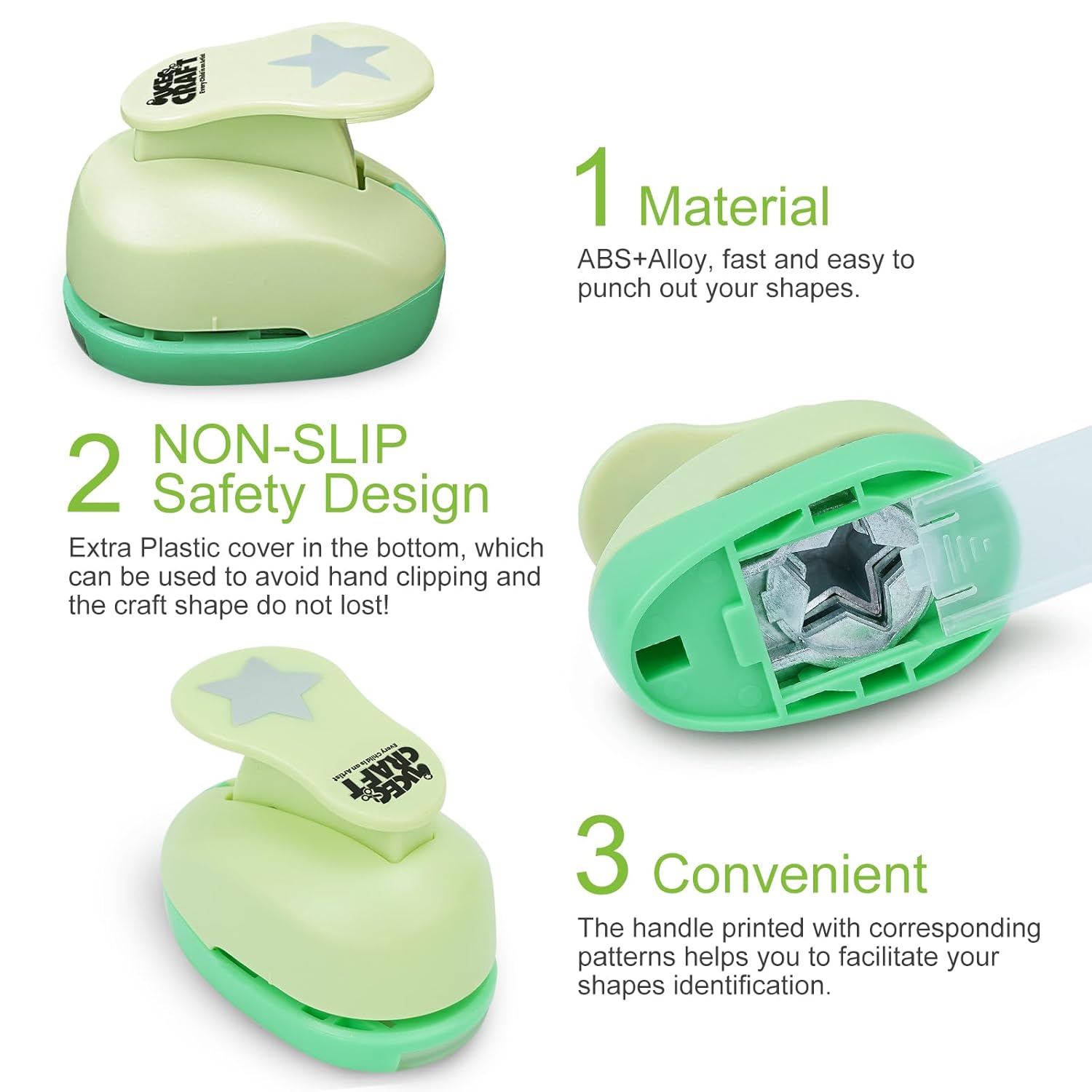 UCEC Star Hole Paper Punch, Star Lever Puncher for Crafts, 1 Inch Craft Punch, 5/8 inch Hole Punch Shape, 3/8 inch Paper Punch for Crafting