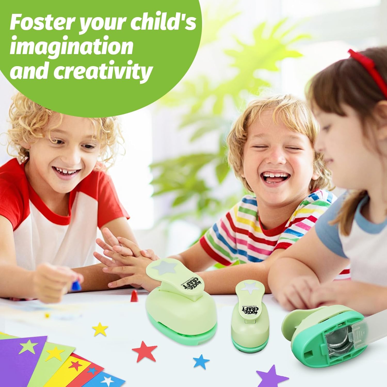 - CHILD-FRIENDLY PUNCH: Made from ZBS zinc alloy, star punch is specially equipped with a child safety lock to avoid hurting their fingers and is easy to store. Spring-operated design and bigger handle fit kids small hands. Great star punches for paper crafts excite children's curiosity, promote imagination, develop intelligence, and exercise the ability to use hands and brain
