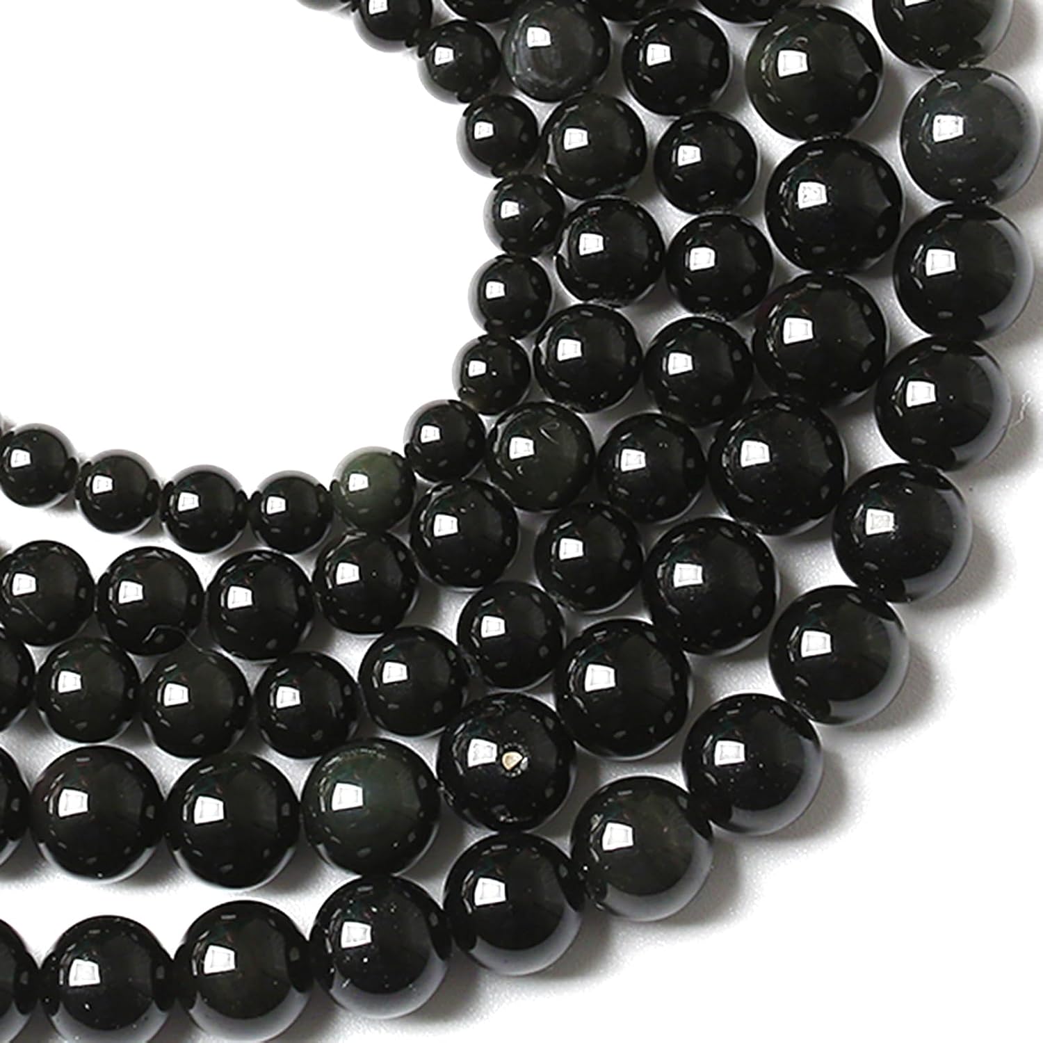 - MATERIAL:Natural Black Obsidian Stone beads, round beads with highly polished, smooth, shiny surfaces, Excellent Polishing