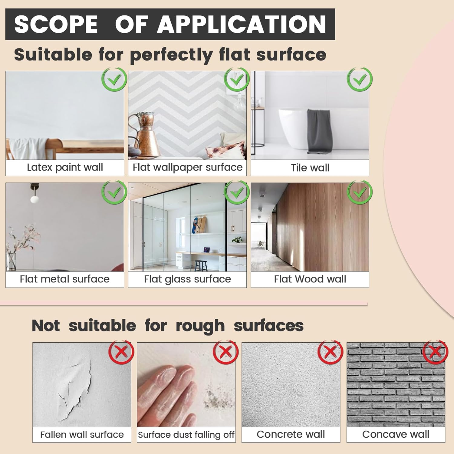 - Clear Reflective: Please peel off the protective film of mirror surface after paste on the wall