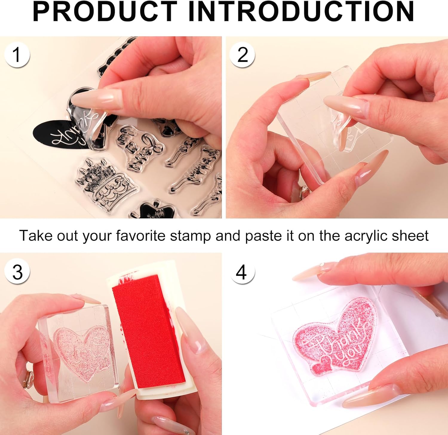 - Easy to Use: Just tear off the stamp from the transparent paper and apply it on the acrylic block, then apply the ink on the stamp, put the pattern to be printed on the surface to be printed and press hard for a while, you can get clear and beautiful patterns on your items