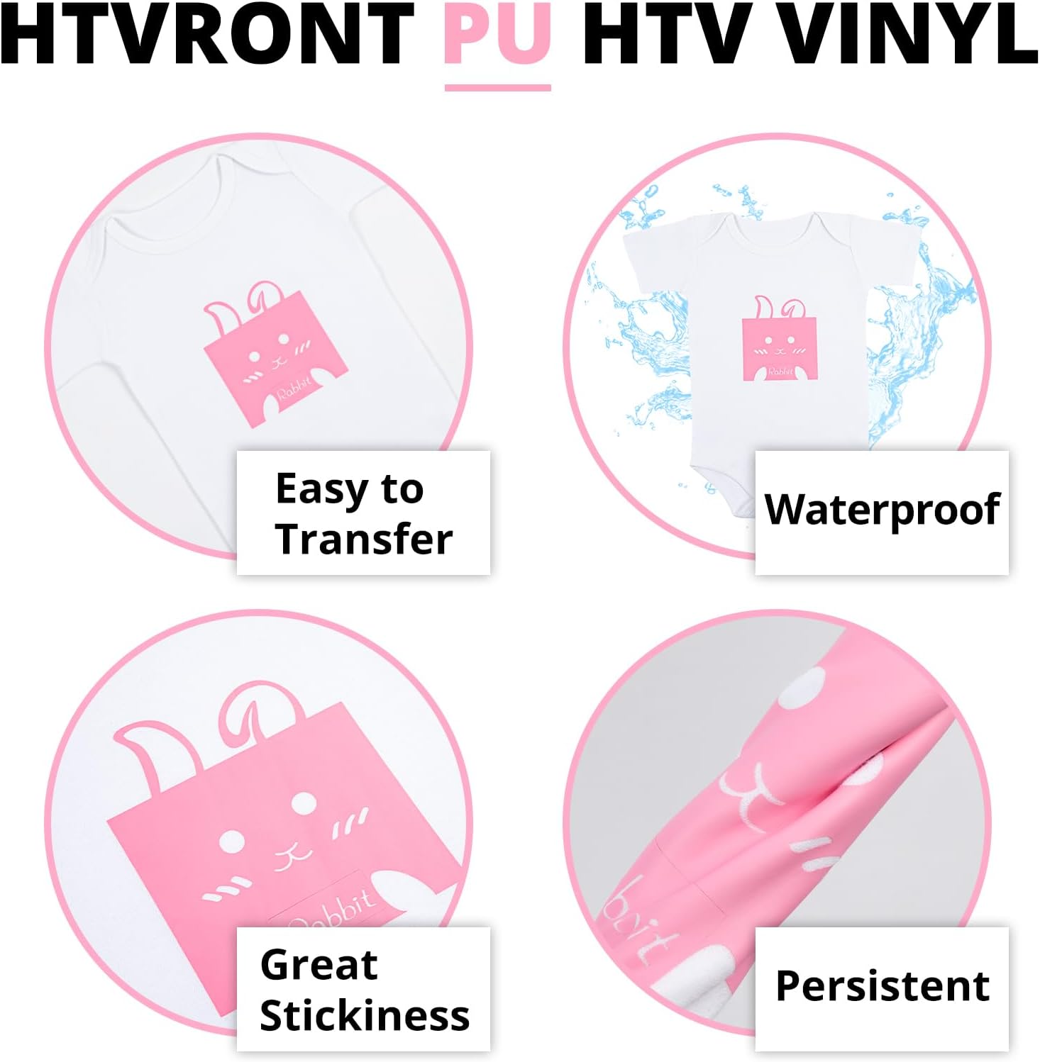 - 【SUPERIOR MATERIALS & DURABLE】Pink heat transfer vinyl is made of professional grade PU material, which makes it extremely stretchable and durable. Our HTV vinyl sheet is very thin, easy to operate, environmentally friendly, safe to wear, perfect for decorating children's clothing and Accessories.