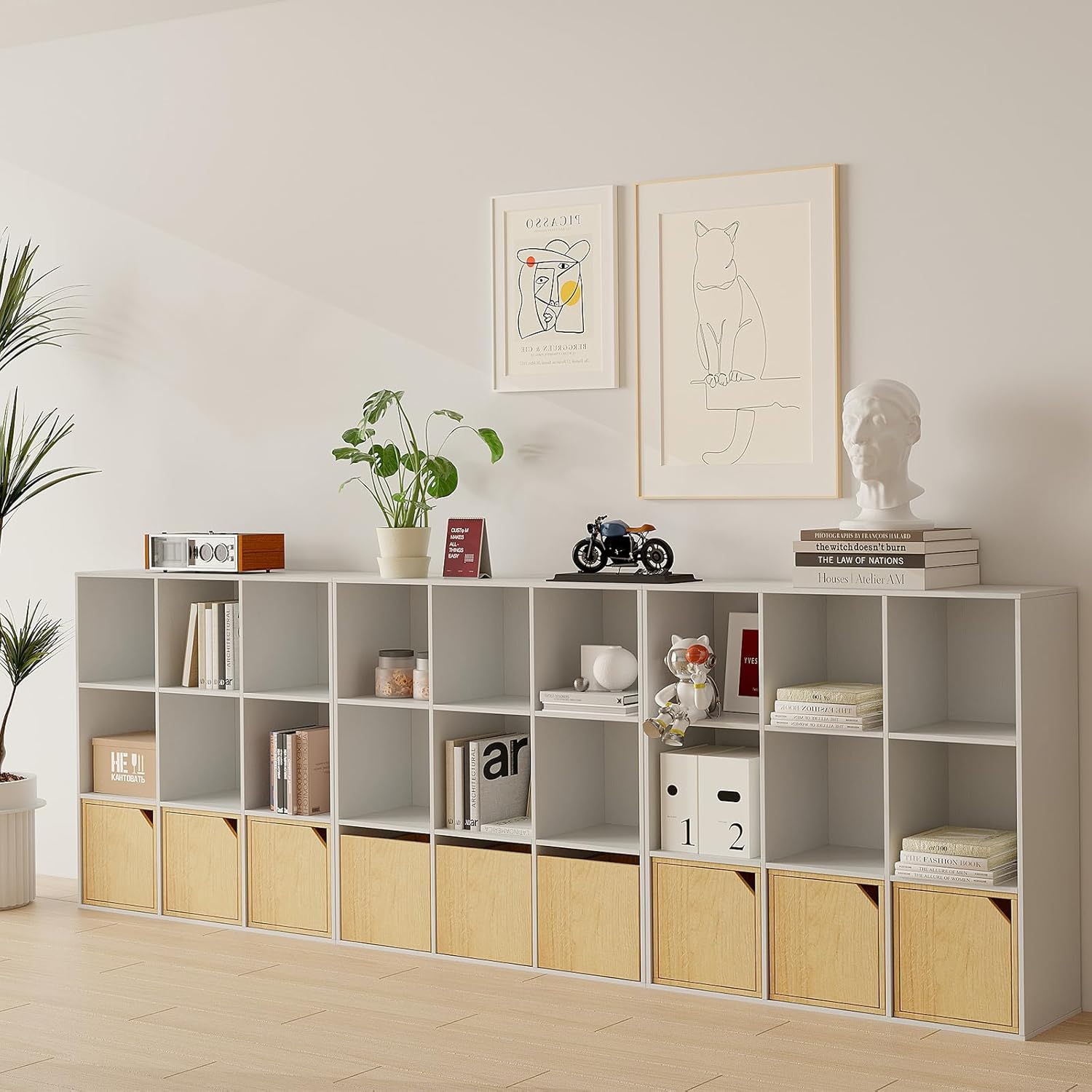 Wood Storage Organizer Drawer, 2 PCS 11x 11x 10Inch Wooden Bins Box for Home Books Clothes Toy Modular Open Cubby Storage System - Office Bookcase Closet Shelves,Natural Oak